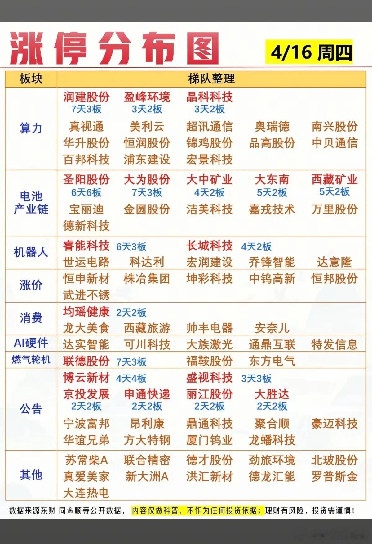 4月16日周四市场涨停热点:梯队+高度+题材!算力租赁 16股涨停电池产业链 11股涨停机器人 7股涨停涨价 6股涨停大消费 5股涨停