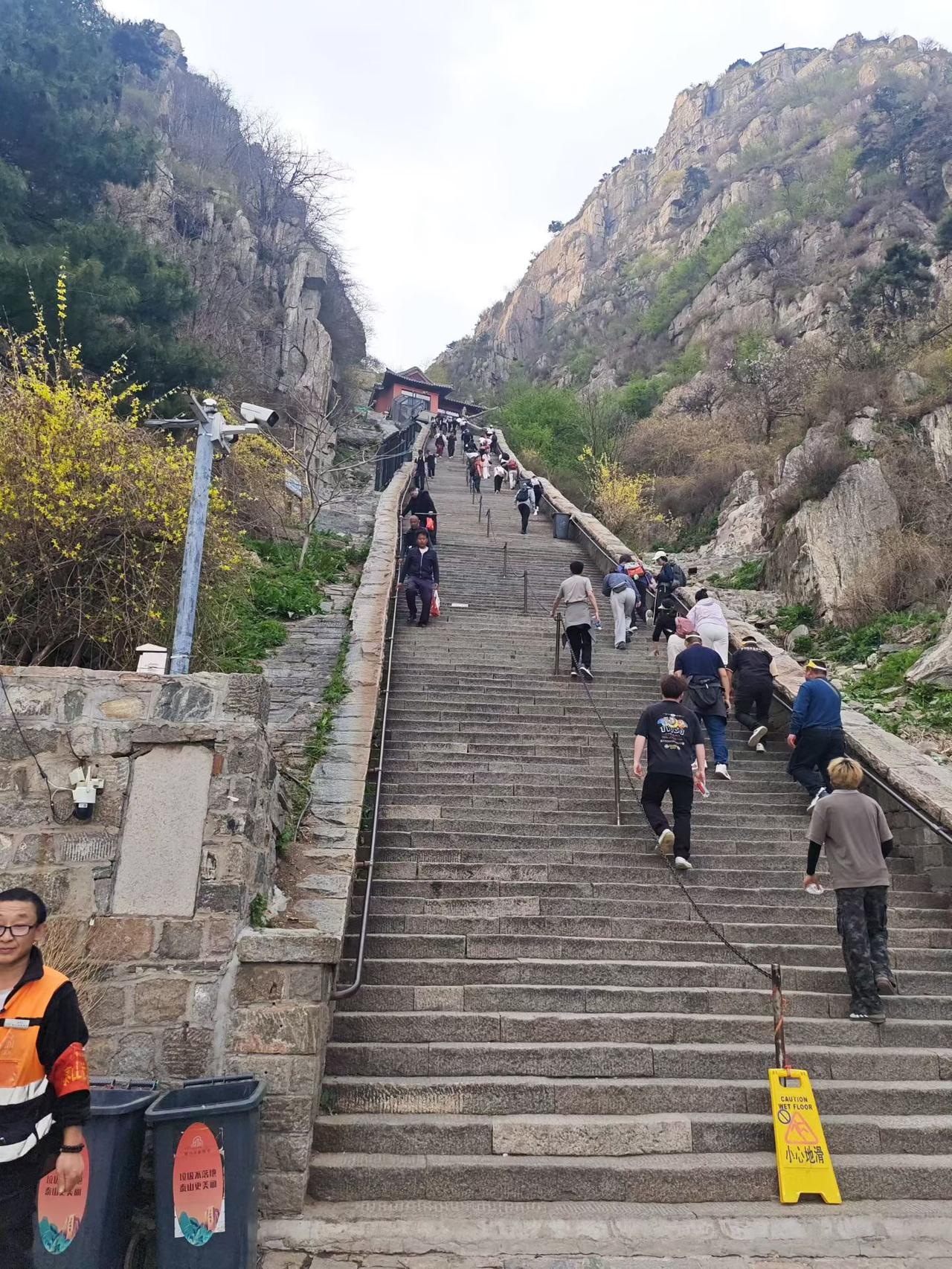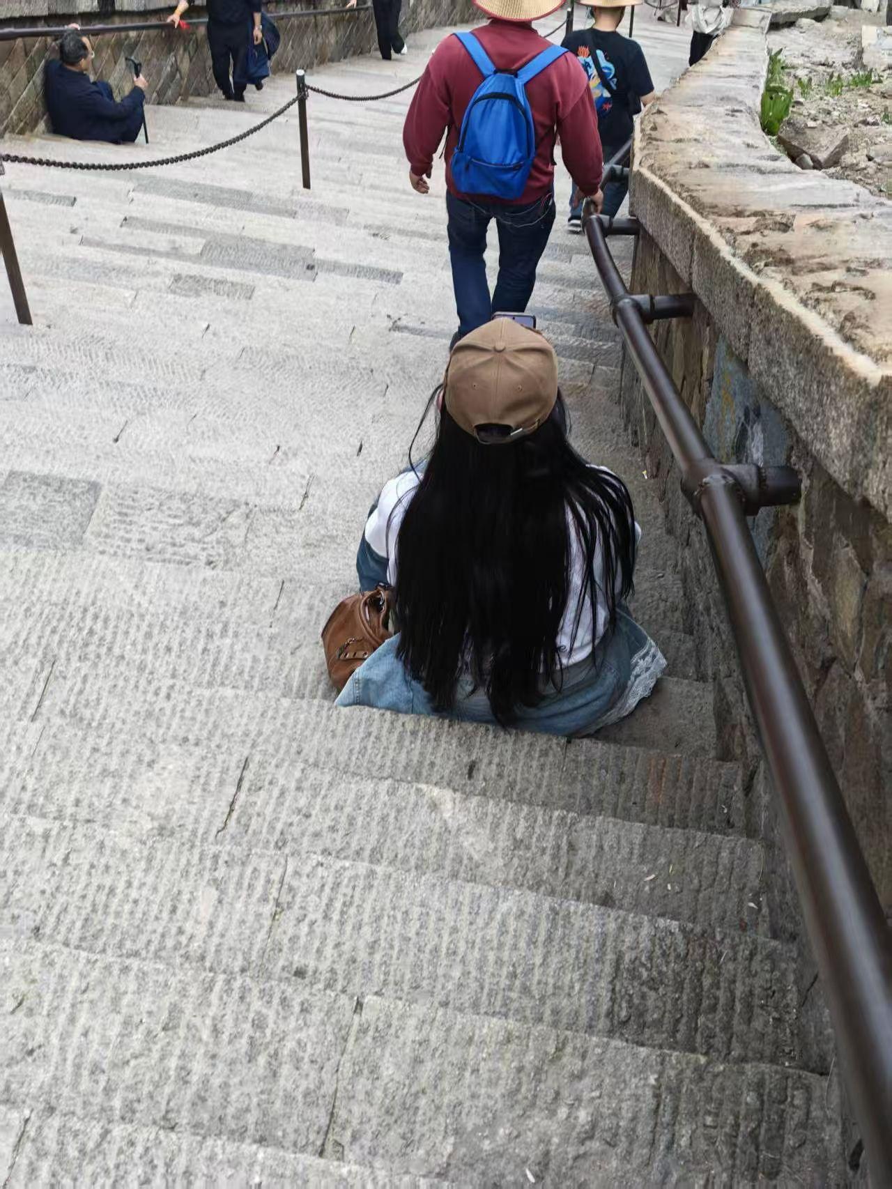 果然,泰山会教训每一个嘴硬的人! 坐着缆车上去了,本以为下山很轻松,结果还是想多了。 平常也不怎么锻炼,下到一半的时候,感觉两个腿都在颤抖,仿佛不是自己的。 还好,随时可以坐下来休息。 不敢想象,如果是徒步爬上去,今天会有什么结果。 明天更不好说,可能下床都费劲。 没事的时候还是应该好好锻炼。