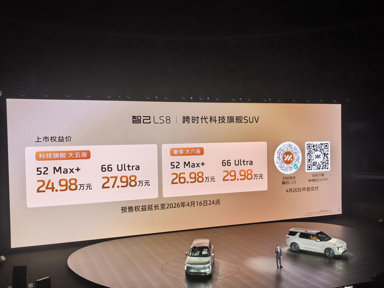 上汽智己LS8上市,权益礼价售24.98-29.98万。