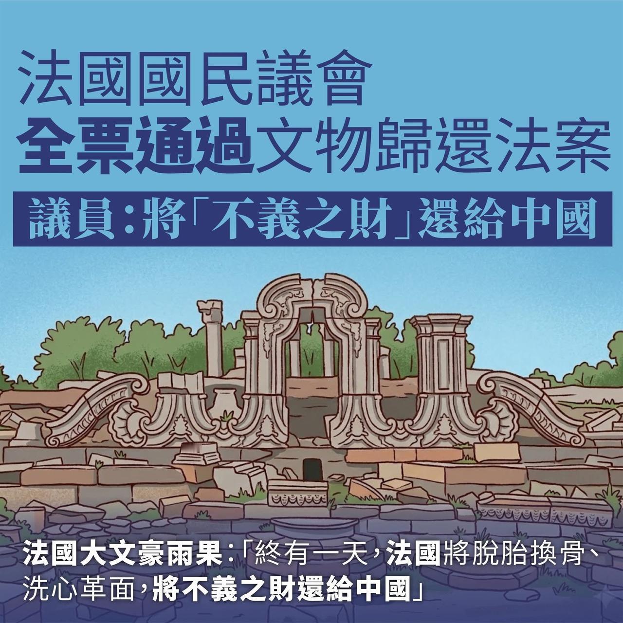 《香港高Sir•高能•热点词》 2026.04.16 热点词:法国真的要归还文物了 不义之财必须归还中国 万不要放过英国文物盗贼 法国国民议会以170票贊成、0票反对的结果通过关于归还非法占有文物的法律草案,同时通过多项修正案。该草案适用范围为1815年至1972年期间,法国以偷盗、掠夺等非法方式所得的外国文物。法国议员热雷米帕特里耶-莱图斯发言时,说到法国文豪维克多雨果的梦想:「法兰西能脱胎换骨,将不义之财归还被抢掠的中国」,他直言「这一天终于到来」。 高SIR:历史的跫音,有时沉重如雷,有时却也带来正义的迴响。近日,法国国民议会全票通过了简化殖民时期非法获取文物归还程序的法案。这一法律框架的建立,标誌着法国正试图打破自19世纪以来确立的「公共馆藏不可转让」之法律铁律。诚如法国议员所言,文豪雨果期盼法兰西洗心革面、归还从圆明园掠夺之「不义之财」的那一天,终于在制度层面拉开了帷幕。未来的日子,法国真的要归还文物了,这不仅是法国对历史罪孽的有限反思,更是全球文化去殖民化运动的一场标誌性胜利。长期以来,西方列强以「文明保护者」自居,将战争劫掠、强迫交易、欺诈盗掘所得的珍宝据为己有,让大量流失文物面临「想还不能还、想追追不回」的困境。法国此次立法,明确将1815年至1972年间非法获取的文物纳入返还范畴,废除繁琐的「一事一法」程序,改由行政法令推进。这意味着枫丹白露宫里那一千余件确定来自圆明园的瑰宝,以及卢浮宫、吉美博物馆内的敦煌文书等珍贵遗产,正静待正义的最终执行。历史早已证明,盗取他国文化根脉的行为绝非文明,而是赤裸裸的罪恶,因此不义之财必须归还中国及其他国家,这是历史的必然,也是国际正义的归位。然而,法国的行动更像是一面照妖镜,将大英博物馆这类「世界最大的赃物陈列馆」推向了舆论的火口。我们万不要放过英国这个「文物盗贼」,英国馆藏之丰、来路之野,世人皆知。若法国尚能展现出直面历史、清洗罪孽的勇气,那麽英国拒不归还掠夺自中国、埃及、希腊等国的文物,那便是人类文明的耻辱。同样要警醒的是日本。作为军国主义阴魂未散、至今仍对二战罪行遮遮掩掩的国家,法国尚且在谈论「抚平历史记忆的伤痛」,日本却依旧在历史问题上百般抵赖,其无耻可见一斑。高SIR必须指出,文化财产是民族灵魂的延续。中国绝不会放弃对流失文物的追索权。既然法国已经迈出了这艰难而正确的一步,打破了西方馆藏的既有壁垒,那麽其余曾参与瓜分、掠夺的国家,理应看齐。正义或许会迟到,但绝不会缺席;那些流落在外的国宝,回家是唯一的归途。 各国网友要求大英博物馆归还文物大英博物馆陷自盗丑闻多国要求归还文物不义之财必须归还中国