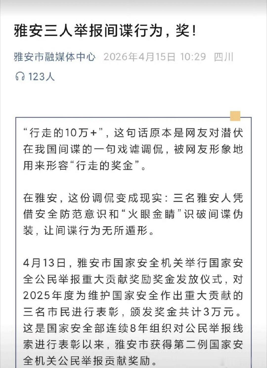 间谍无孔不入,都渗透到川西了!群众举报获奖