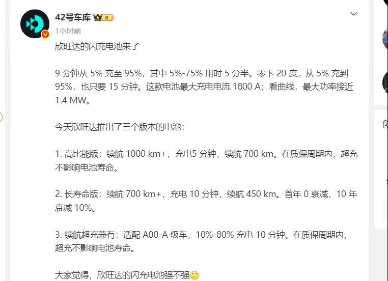 欣旺达居然把闪充电池给整出来了?~!那。。。福建电池厂是不是得赶紧把菜端出来了
