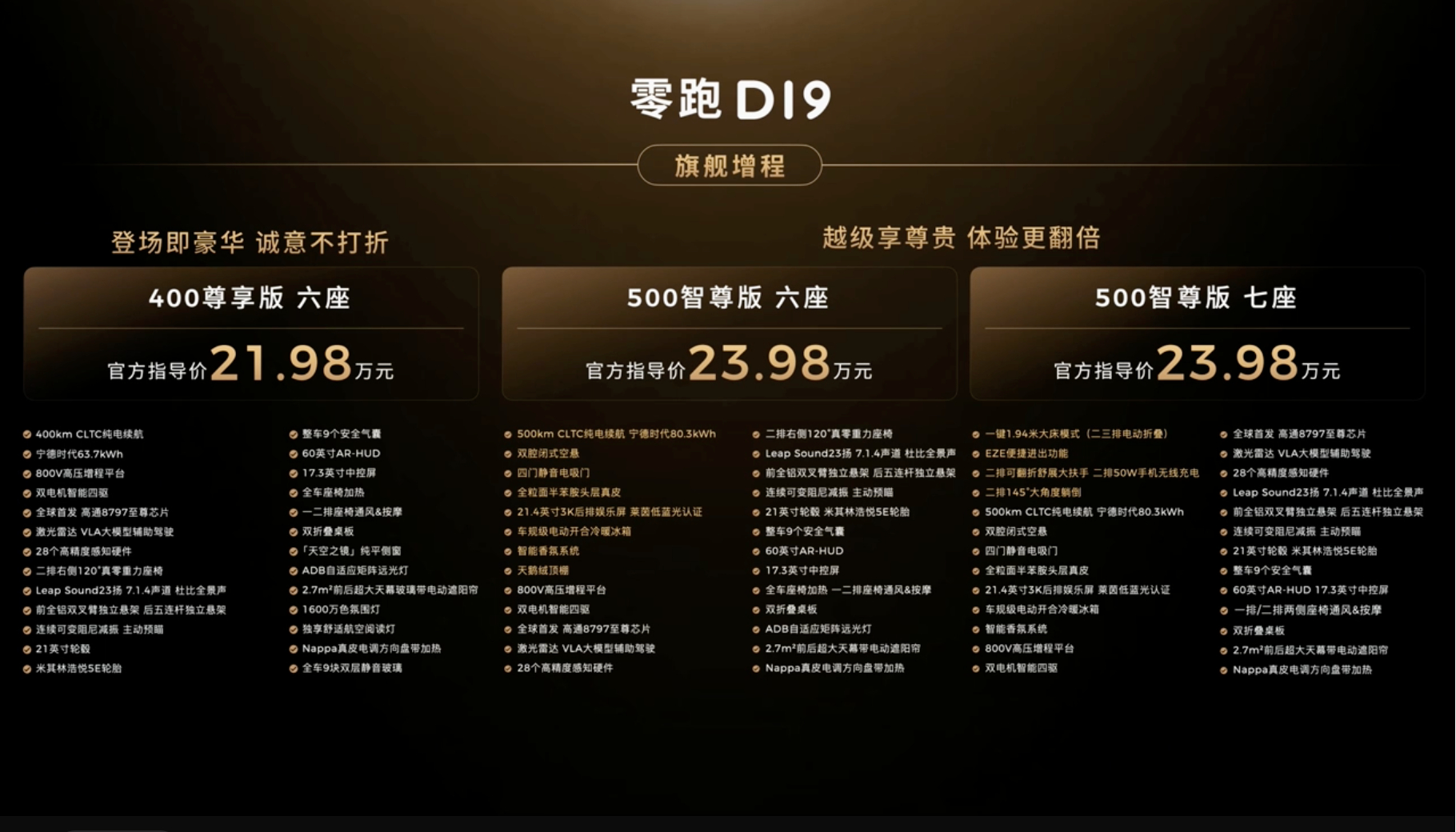 原来9系旗舰SUV价格也能这么香零跑D19满配豪华上市21.98万起我直接去查了配置单21.98万的起售价真的超级有诚意不是价格定义旗舰,是体验定义旗舰