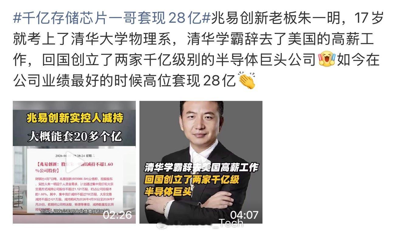 千亿存储芯片一哥套现28亿 那很离谱了之前的存储芯片涨得有多凶呀,那直接套现就很顶了