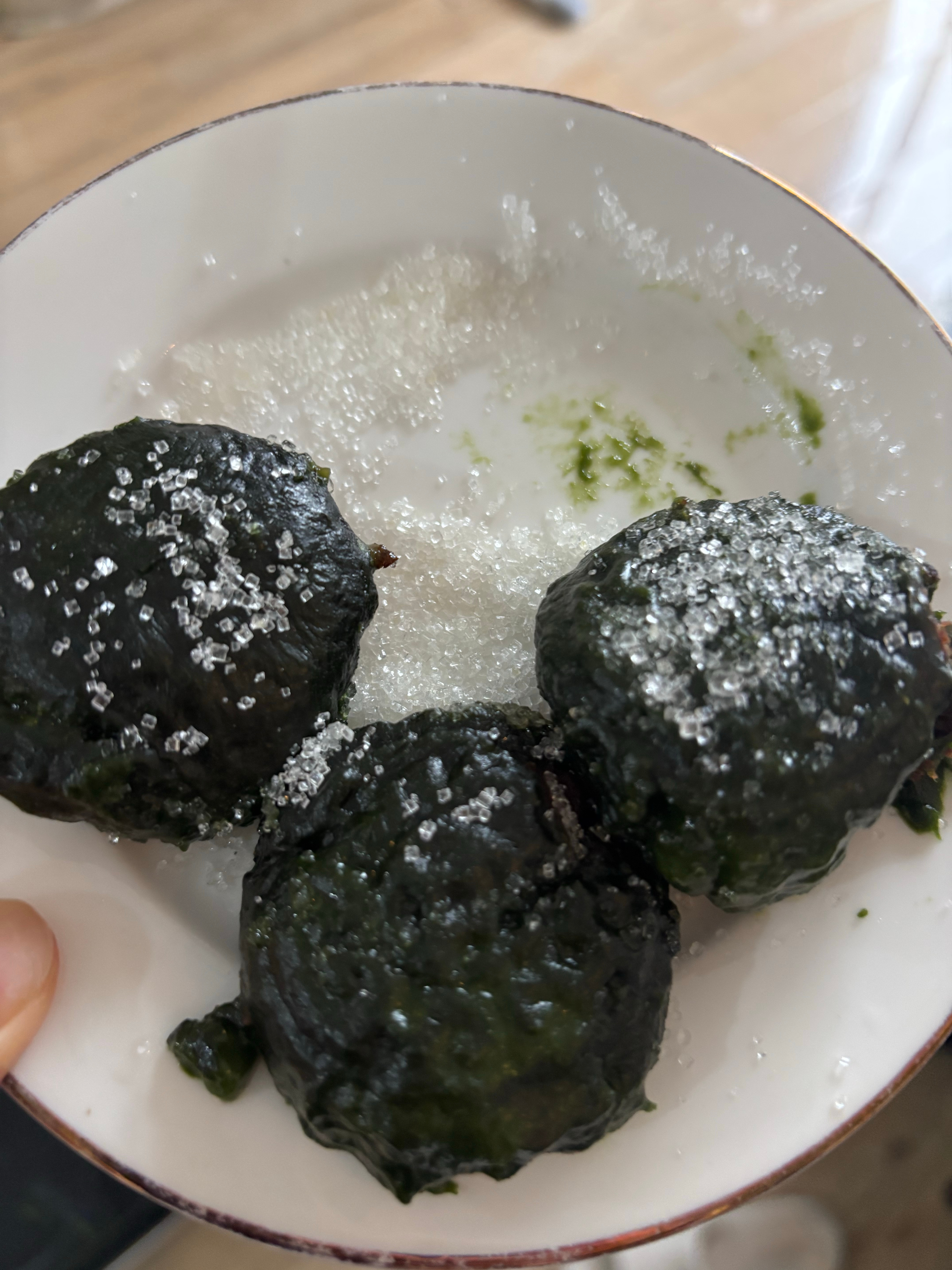 蒿子粑粑搞几个~上次是煎的 这是蒸的沾糖吃 软糯Q弹挺不错