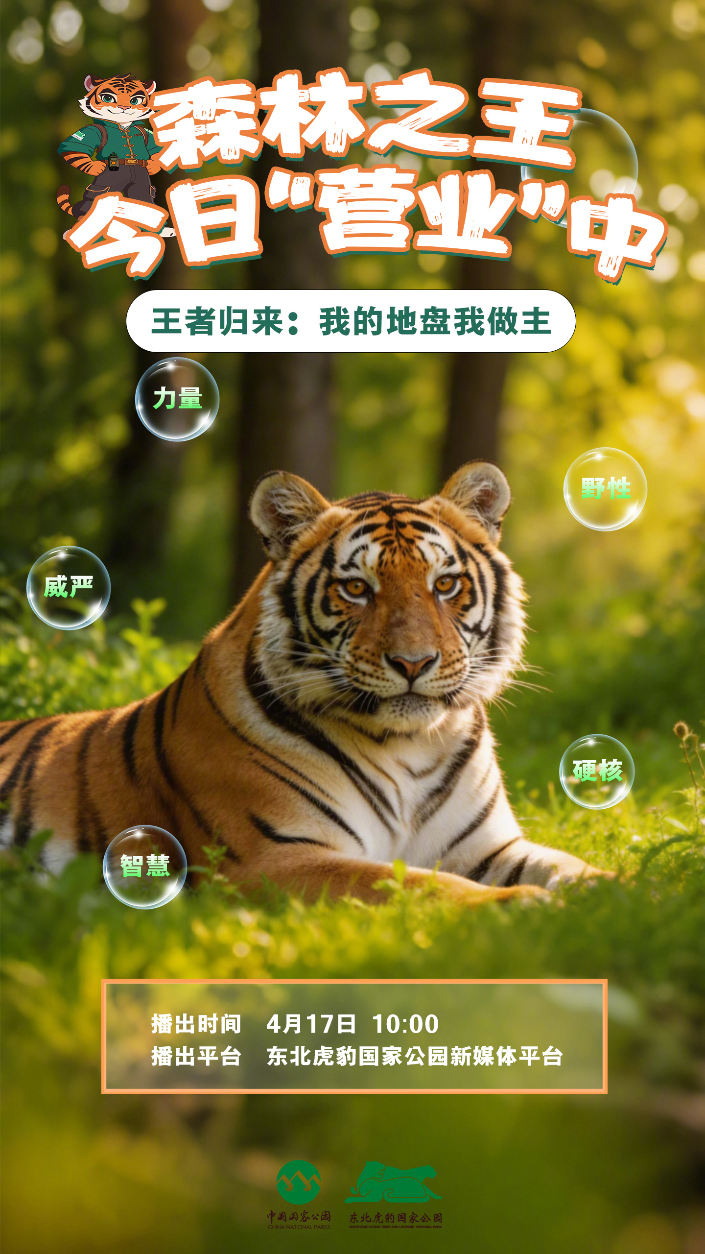 【播出预告:森林之王今日营业中】森林之王的日常,你以为只是霸气外露?其实还有超多“反差”等你发现!4月17日(明天)10:00,锁定国宝面对面直播间,一起邂逅东北虎,走进它的世界,见证我国旗舰物种保护的坚实成果!
