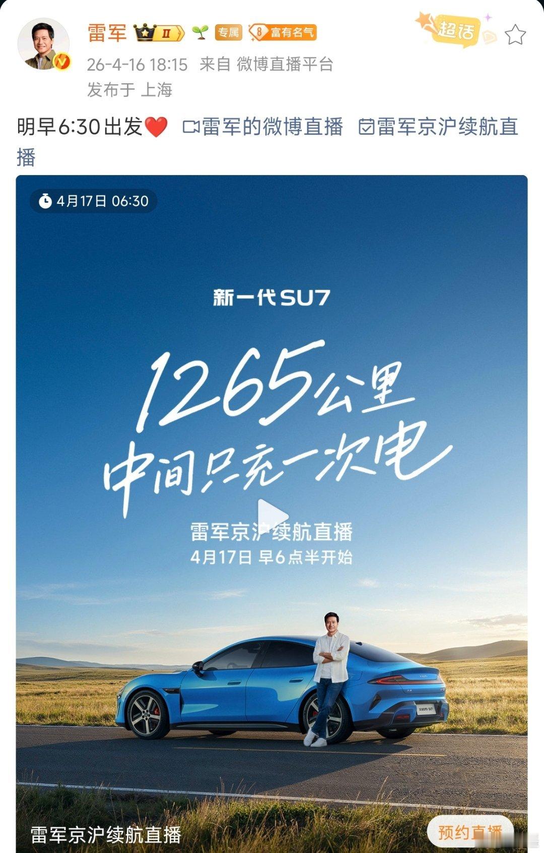 雷总争议最大的一句话之一:跑1,300公里中间只充一次电。而明天,雷总亲自上