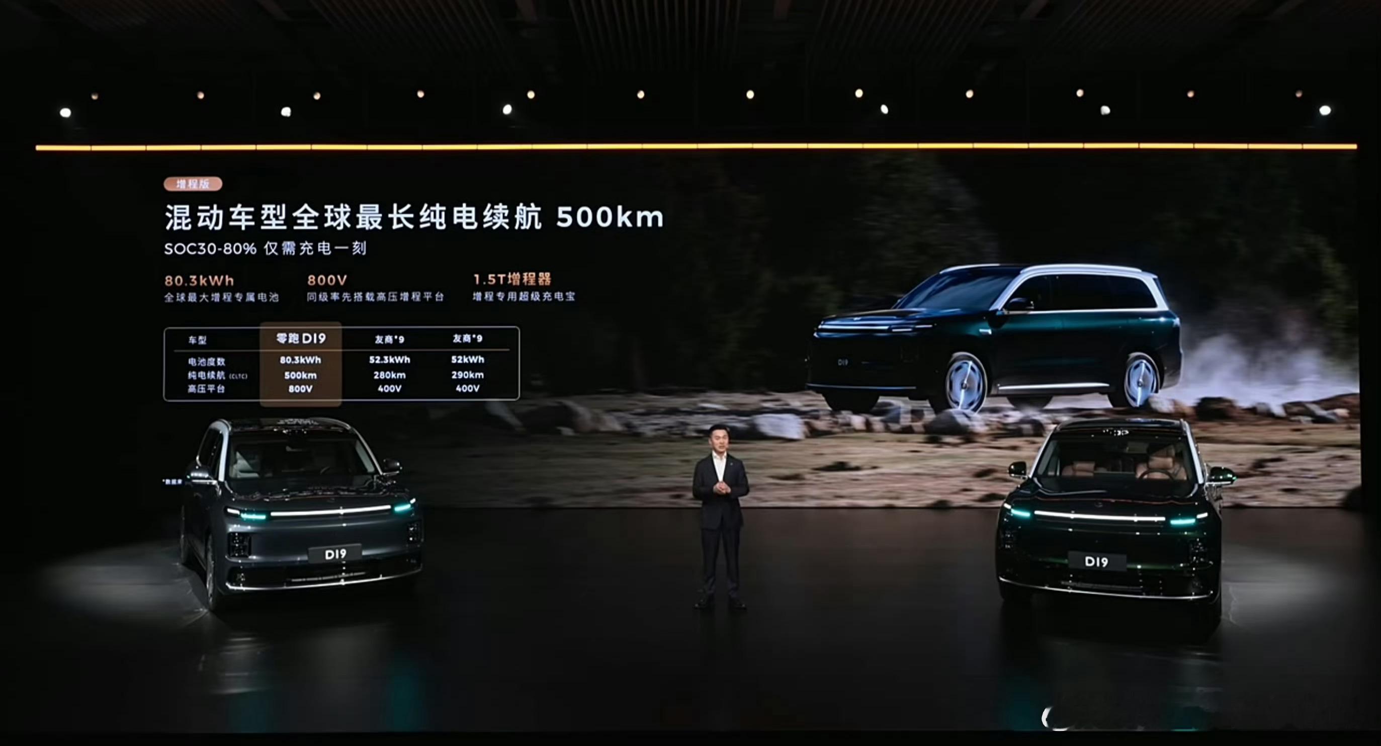 在纯电版上,凭借这套全新的超混电芯技术,D19实现了720km长续航;而增程版则搭载了宁德时代最新的高比能纯LFP方案,凭借80kWh的超大容量,达到了500km纯电续航。