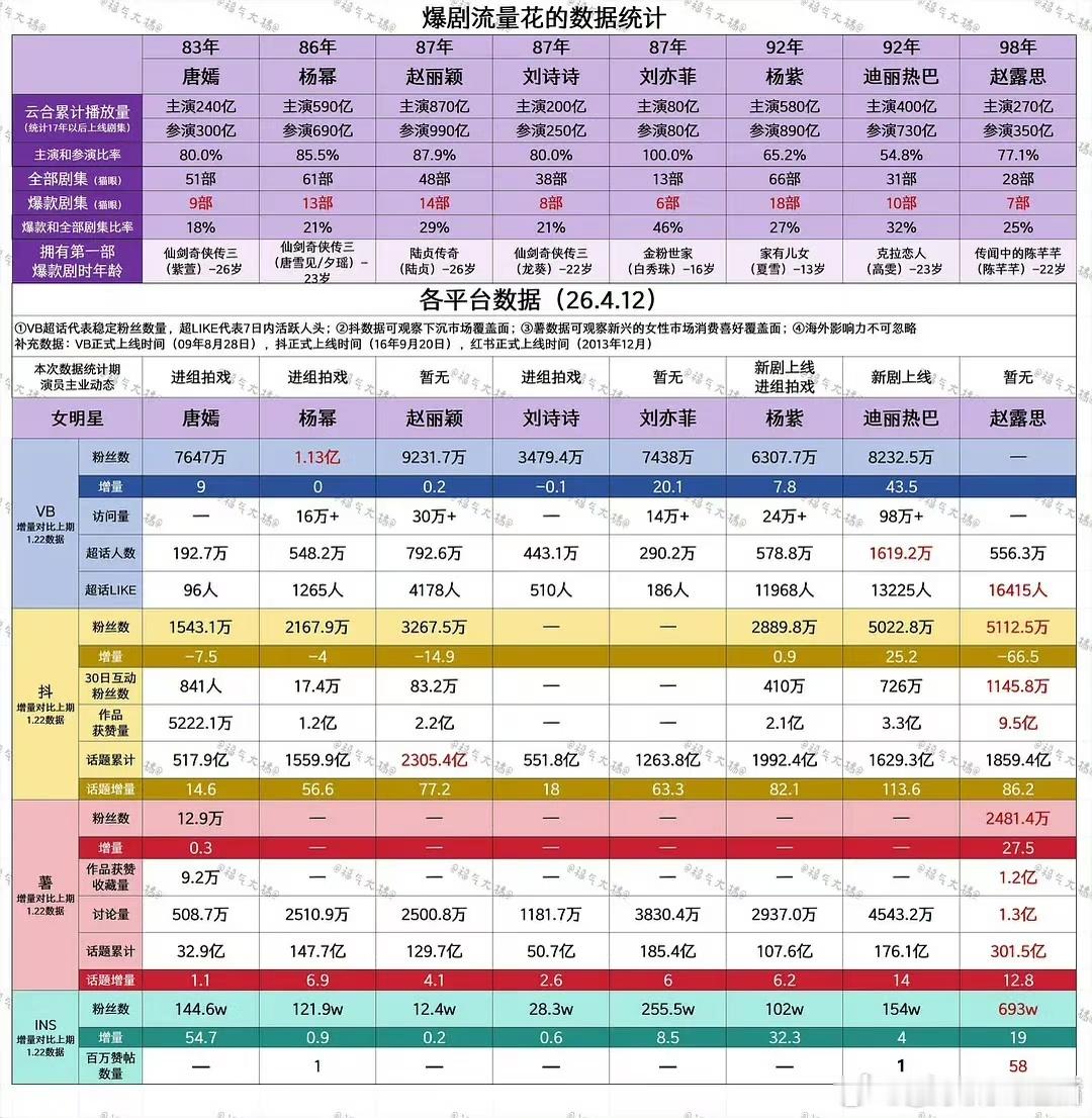 爆剧流量🌸数据统计98的赵露思是全方位无短板的top🥇