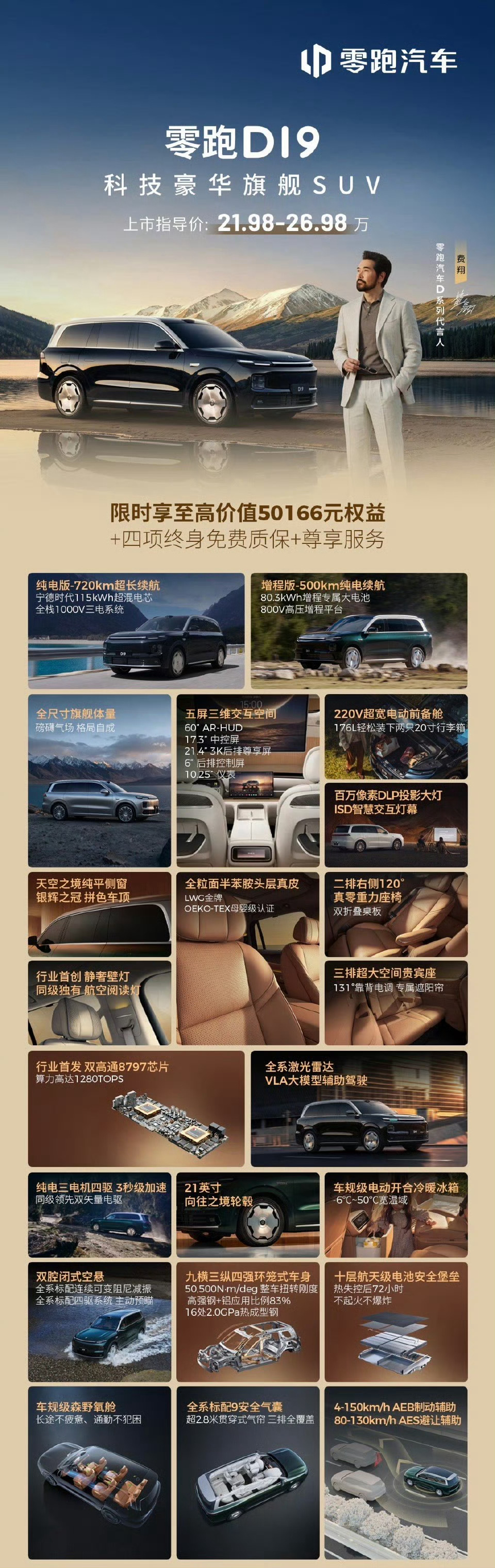 零跑发布会说实话,我一直觉得零跑在性价比这块就没输过,但这次零跑D19一出来,还是直接把我惊到了。21.98万起的定价,直接把全尺寸豪华旗舰SUV的价格卷到了新高度,放在以前根本不敢想。原来9系旗舰SUV价格也能这么香很多人觉得旗舰SUV就得高不可攀,可零跑偏不,靠着全栈自研硬生生把门槛拉低了。21.98-26.98万这个区间,能买到这么强的配置,真的有点离谱。续航上完全不用纠结,纯电版720km,增程版纯电也有500km,日常代步足够用,跑长途也没焦虑。智驾这块也没含糊,激光雷达、VLA大模型、双高通8797芯片全系安排上,智能体验直接拉满。空气悬架、车载冰箱、21寸轮毂、五屏交互、六座零重力座椅……能给的几乎都堆满了,不管是家用带娃还是商务接待,都很有排面。零跑D19满配豪华上市21.98万起二十多万的预算,能享受到接近百万级的质感和配置,零跑这波确实是诚意拉满。也难怪一发布就这么受关注,用实实在在的产品力说话,确实很圈粉。
