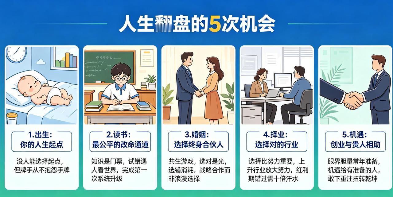 人生转折无非五次,多数人一次抓不住,少数人抓一两次命运不同