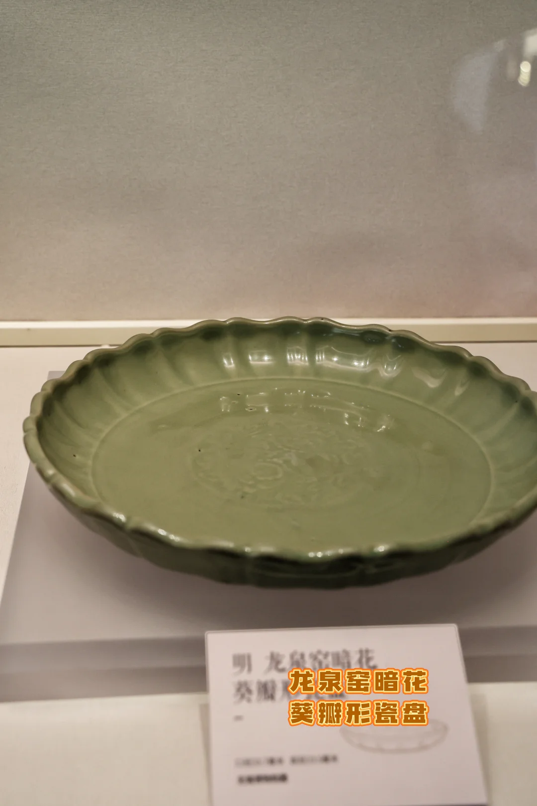 明代龙泉窑的雅致代表!葵瓣形的花口,盘心暗刻花纹,青釉匀净温润,暗花若隐若现,是明代青瓷工艺的传承与创新,摆在家里都是满满的东方雅致。