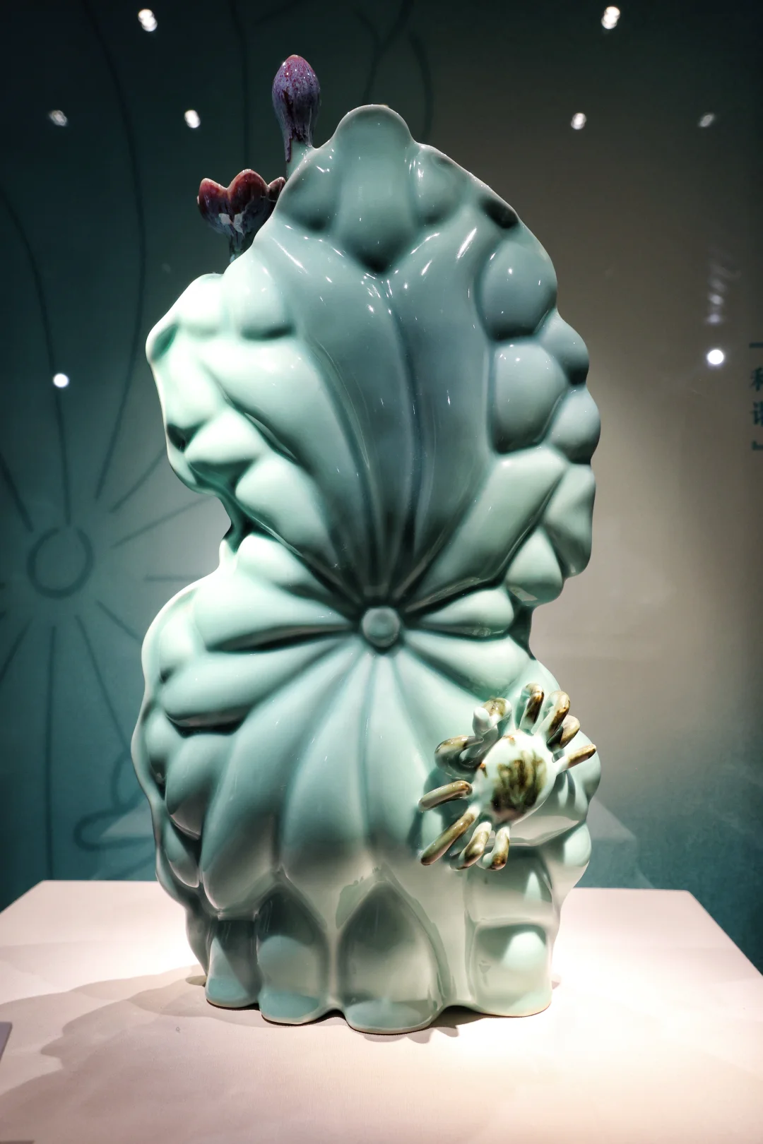 🪷莲升碗:整器如一朵盛放的莲花,青釉从瓣尖到瓣底渐变,光影下仿佛真的有莲香浮动,美到失语。还有那只荷叶螃蟹摆件、银杏纹青瓷盘,每一件都把江南的诗意刻进了釉色里,把传统青瓷玩出了新的生机。