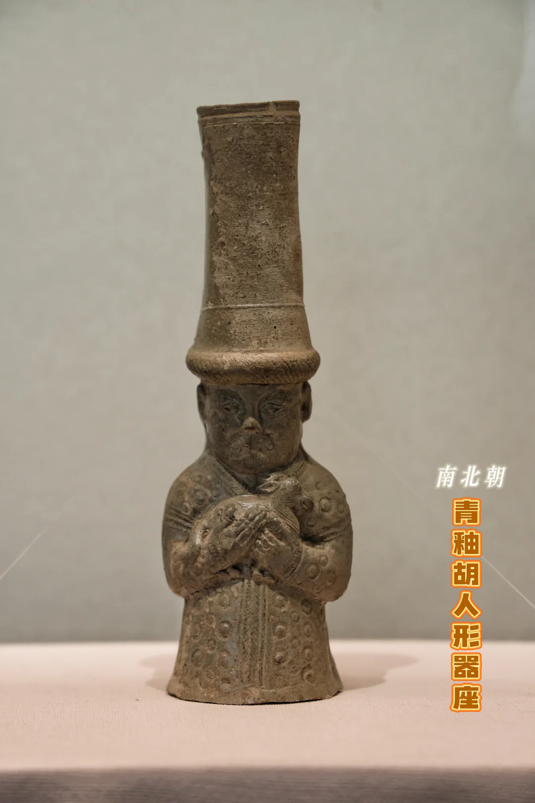 最有故事感的一件!高鼻深目的胡人形象,头戴高帽,怀中抱着瑞兽,青釉古朴厚重。它不仅是青瓷工艺的见证,更藏着南北朝时期南北文化交融的历史,一眼就能穿越到那个风云激荡的时代。