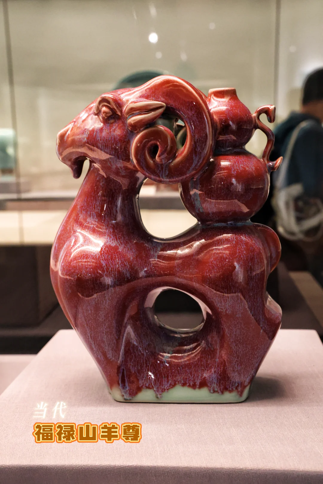🐑福禄山羊尊:窑变釉色如赤霞流金,羊身驮着葫芦,福禄双全的好寓意,造型灵动又大气。