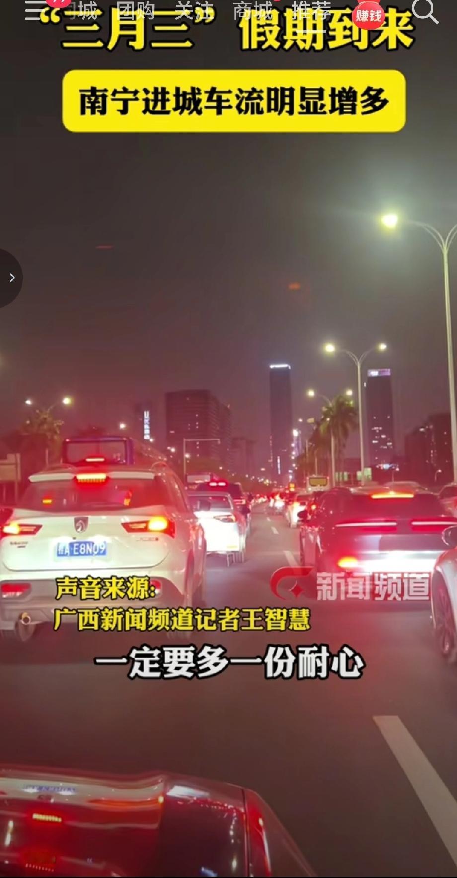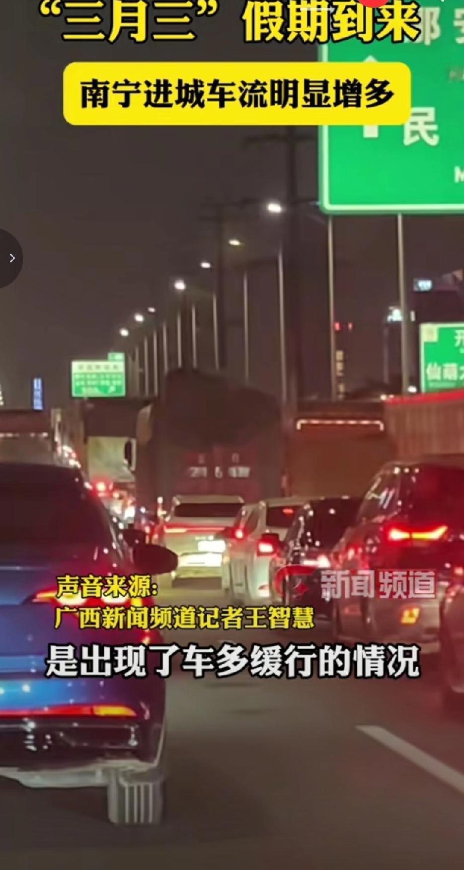 南宁"三月三"进城车流实时提醒:假期进城车流已明显增多,核心拥堵路段集中在 南宁东收费站、安吉收费站、玉洞西收费站 及绕城高速进城方向。当前10:00-14:00为进城高峰,预计傍晚17:00-19:00仍有车流小高峰。可避开南宁东,选择 五合收费站、蒲庙收费站 进城;避开安吉收费站,走 高峰收费站、石埠北收费站 绕行,南宁交警已加强收费站及拥堵路段疏导,可通过「南宁交警」公众号或抖音号查询实时路况,进城前提前检查车况、备好证件。(来源于@广西新闻频道 )
