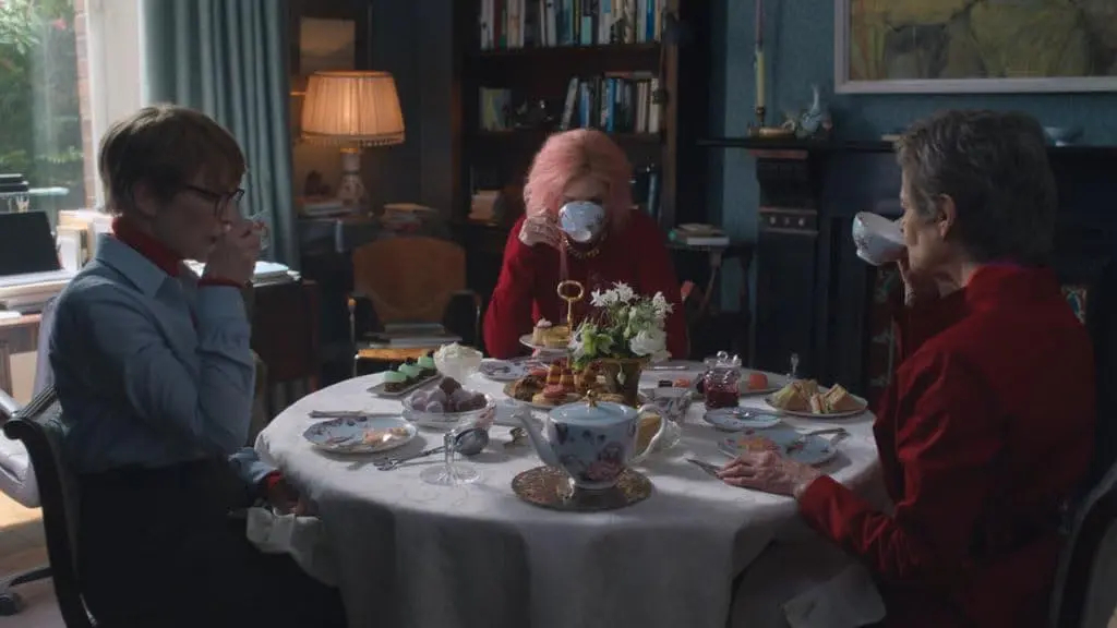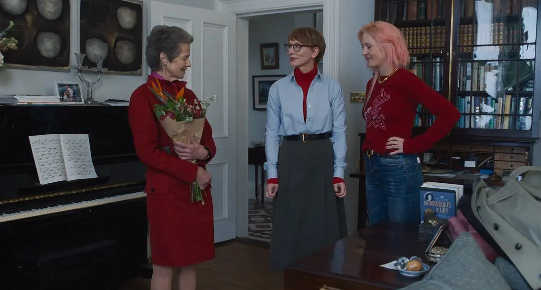 在短片有限的体量里,几位演技派大咖的光芒更盛。尤其第二段故事,威尼斯、奥斯卡双料影后凯特·布兰切特、柏林影后夏洛特·兰普林、欧洲电影奖影后薇姬·克里普斯,三位女星同桌尬聊,奉献了年度最佳群戏之一。