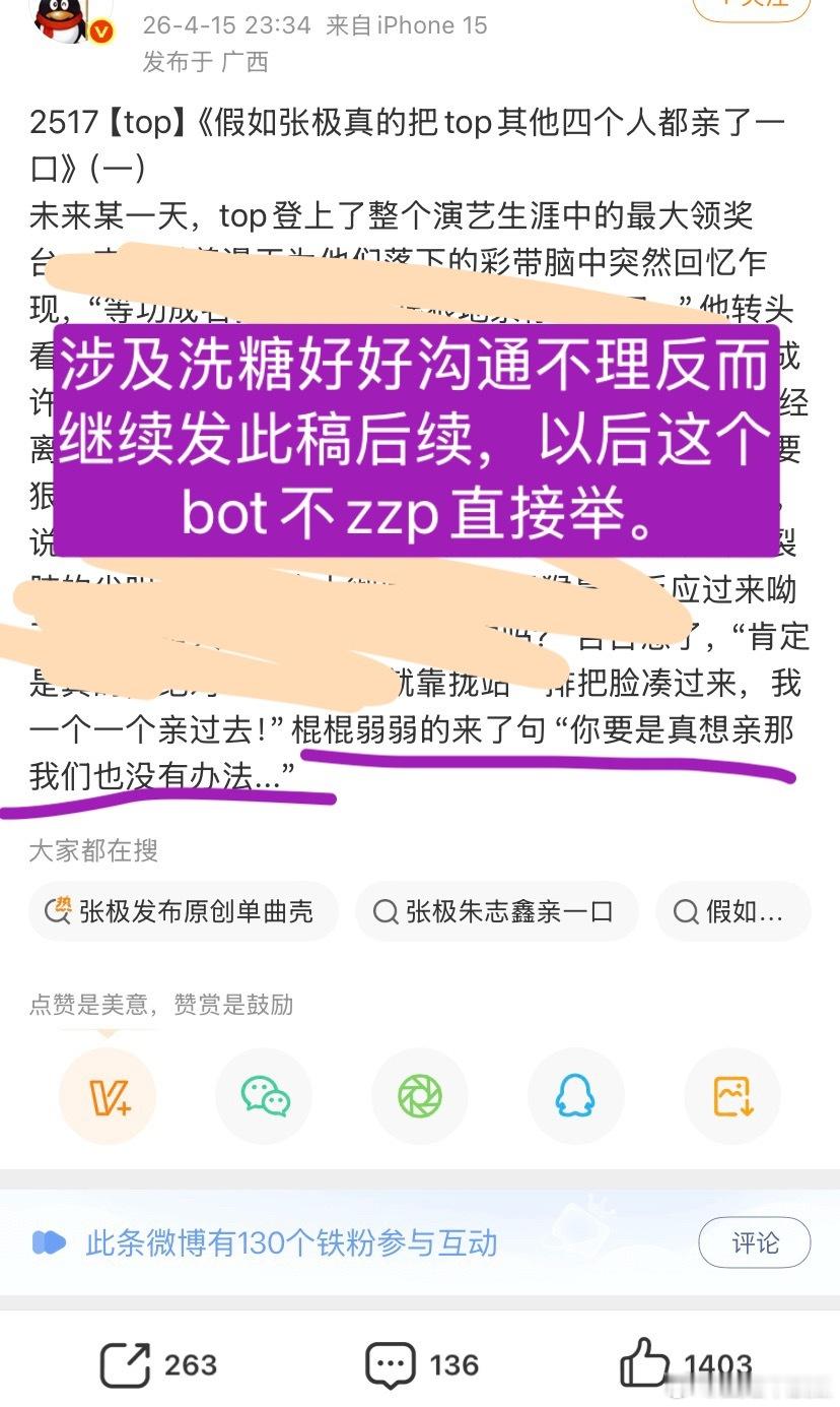 是这样的,首先团产出洗棍铲糖给团,我们好生沟通bot不理,反而继续发2.3。事已至此这个小xxg bot棍铲批不准给流量,所有拆家洗糖直接举。想再起号直说。