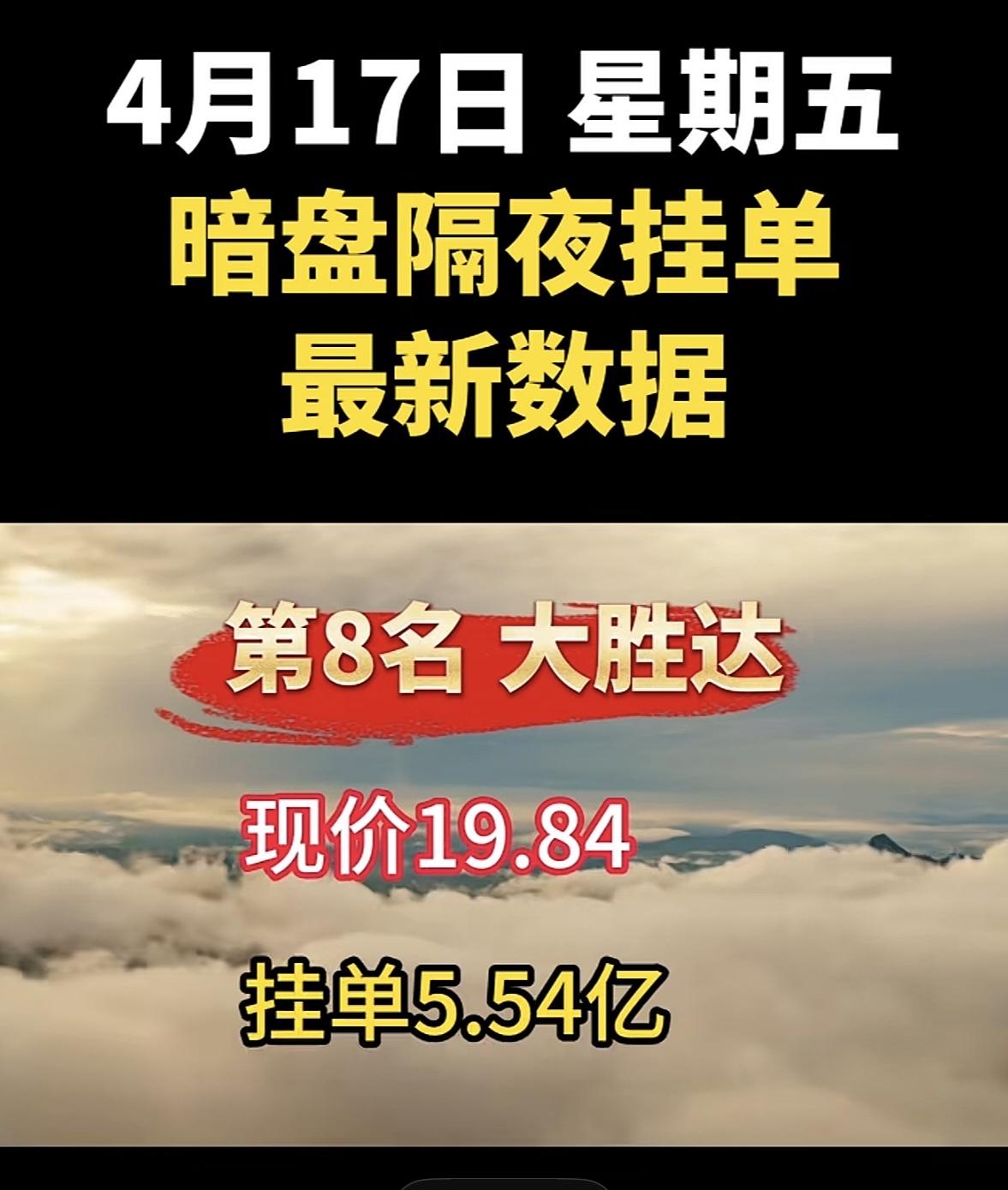 4月17日周五暗盘隔夜挂单排行榜揭晓 4月17日暗盘数据显示,大胜达现价19.84,挂单5.54亿。这数据一出来,估计不少股民的心又开始痒痒了。 我近期操作大胜达的经历就像坐过山车。3月24日在水下深水时建仓,本想套利,结果次日在0轴附近磨,没吃到利润就离场,后来又反复进出。 大胜达因拟跨界投资GPU企业,股价连续逆市飙升。公司计划5.5亿入股芯瞳半导体,控股股东还套现4.38亿。不过其公告存在文字差错,“不低于”写成“低于”,这信披硬伤可不小。而且对芯瞳半导体的股权受让和增资扩股估值差异达70%,问题多多。目前大胜达尚在消化利空,方向不明,还是等确定性强了再重仓吧。
