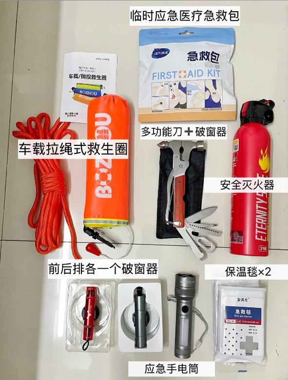 新手女司机车载安全应急清单|上路更安心✨ 第一次买车,作为新手司机上路总少点安全感,特意整理了一套应急好物,遇到突发情况不慌~ 老司机们欢迎在评论区补充,我继续查漏补缺! 1️⃣ 应急医疗急救包 内含碘酒棉签、绷带、消毒片、纱布、创可贴等,小擦伤小磕碰能临时处理。 2️⃣ 遇水自动充气救生圈 本旱鸭子看太多车辆落水视频,果断安排! 放在主驾门板储物格,落水自动充气,关键时刻能救命。 3️⃣ 多功能安全刀 一体多用,可户外应急、简单维修,头部还带安全锤能破窗。 我放后备箱,紧急时可破后备箱玻璃逃生。 4️⃣ 便携破窗器(前后排各 1 个) 双头设计:一头割安全带,一头按压破窗,女生不用大力气也能轻松用。 卖家还附赠试砸玻璃片,亲测好用。 就是有点好奇:双层夹胶玻璃好破吗?懂的车友麻烦科普一下~ 5️⃣ 小容量水基灭火器 做功课选了水基型,有消防合格资质,更耐高温不易炸瓶。 相比传统灭火器更安全,车内自燃初期能快速处置。 6️⃣ 便携手电筒 可调节光照范围与距离,夜晚停车、路况昏暗时都能用,以备不时之需。 7️⃣ 应急救生毯 轻薄不占地,防水、防寒、隔热保温。 万一车子抛锚滞留户外,能应急保暖,放储物格完全不碍事。 目前就备了这些,老司机们还有什么必入安全神器,快来给我安利一波!【来自懂车帝车友圈】