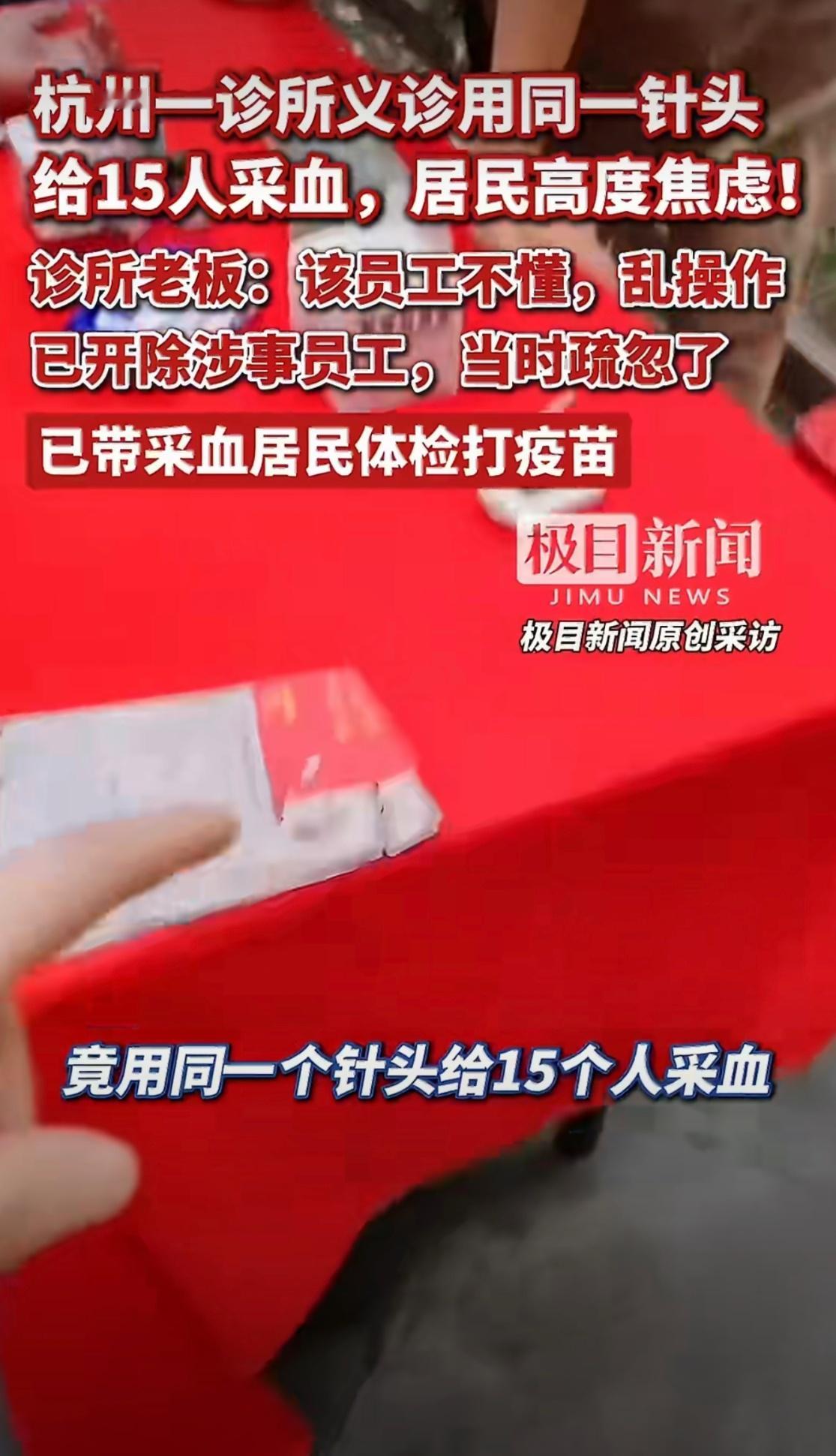 诊所用一个针头给15人采血这完全是黑心诊所吧,不敢想,万一中间有一个有艾滋之类的传染病的怎么办,又是员工个人行为是吧