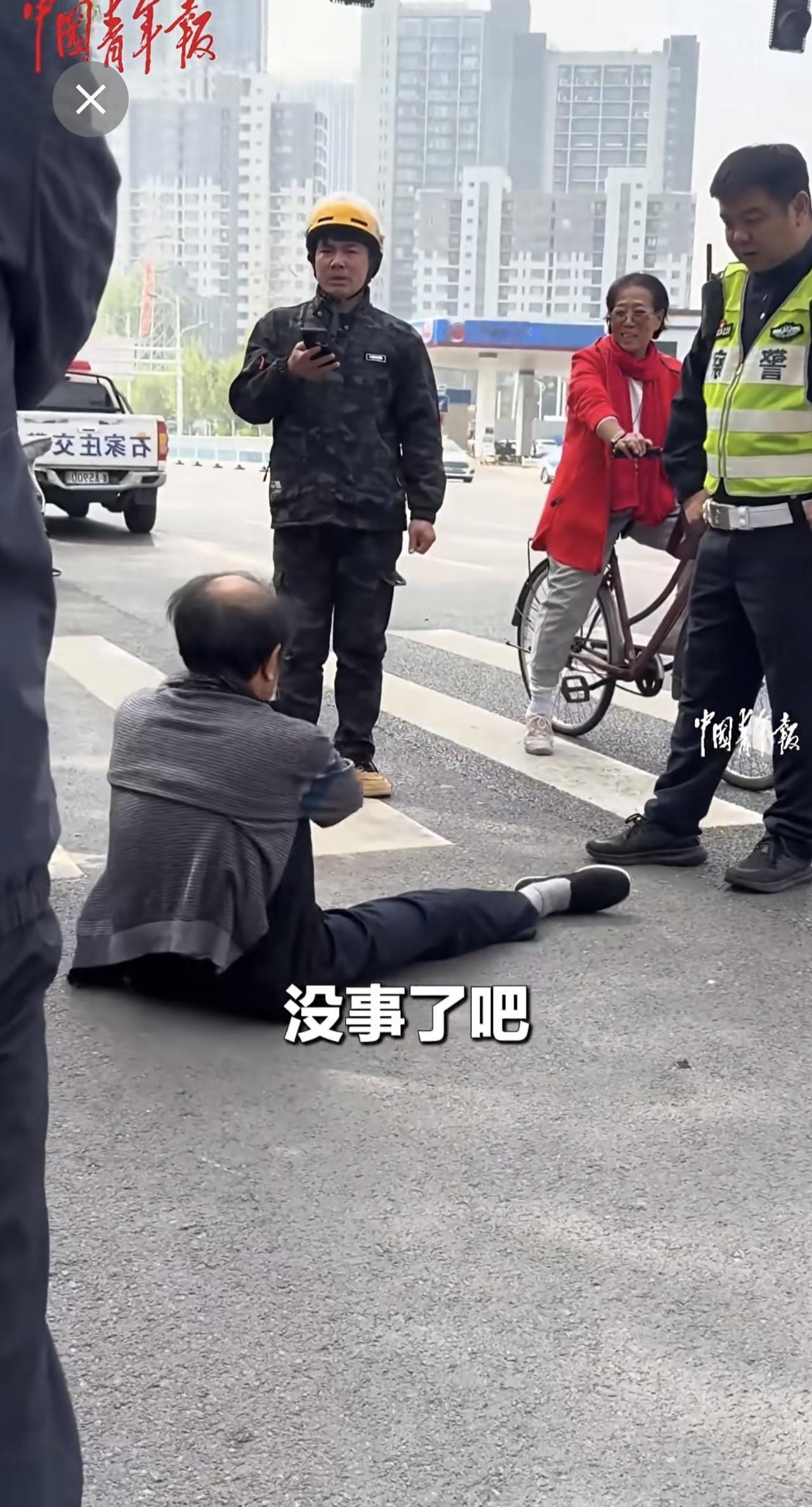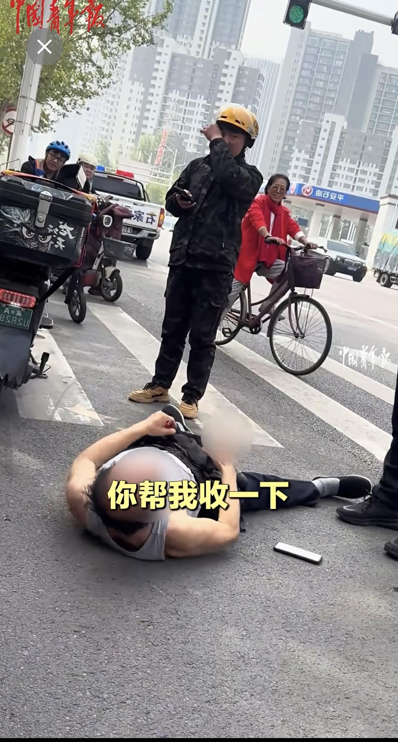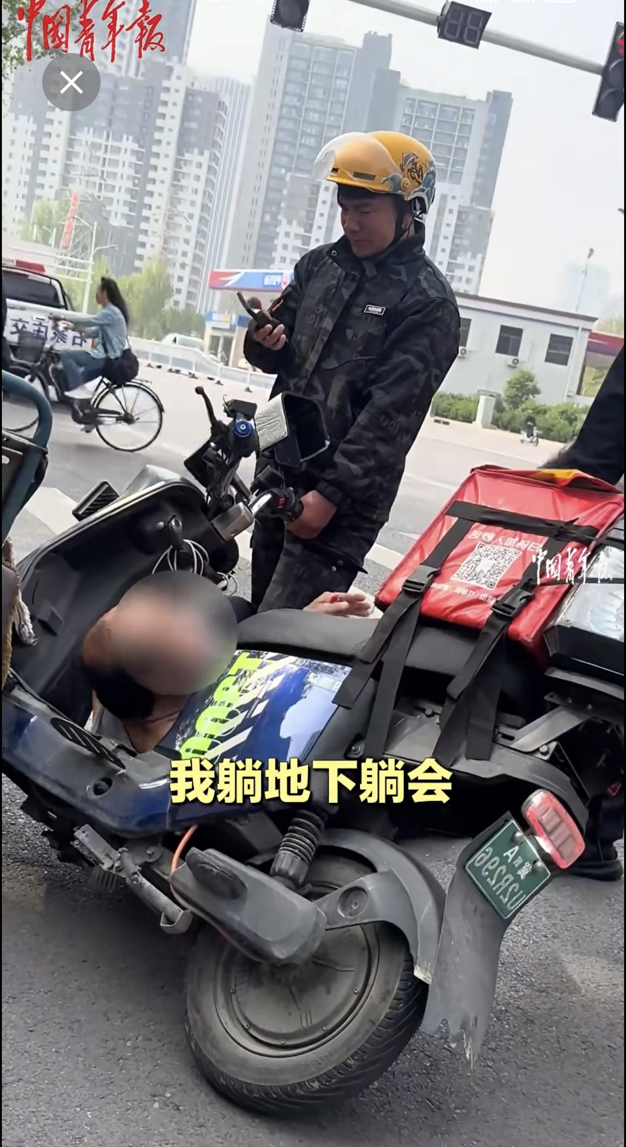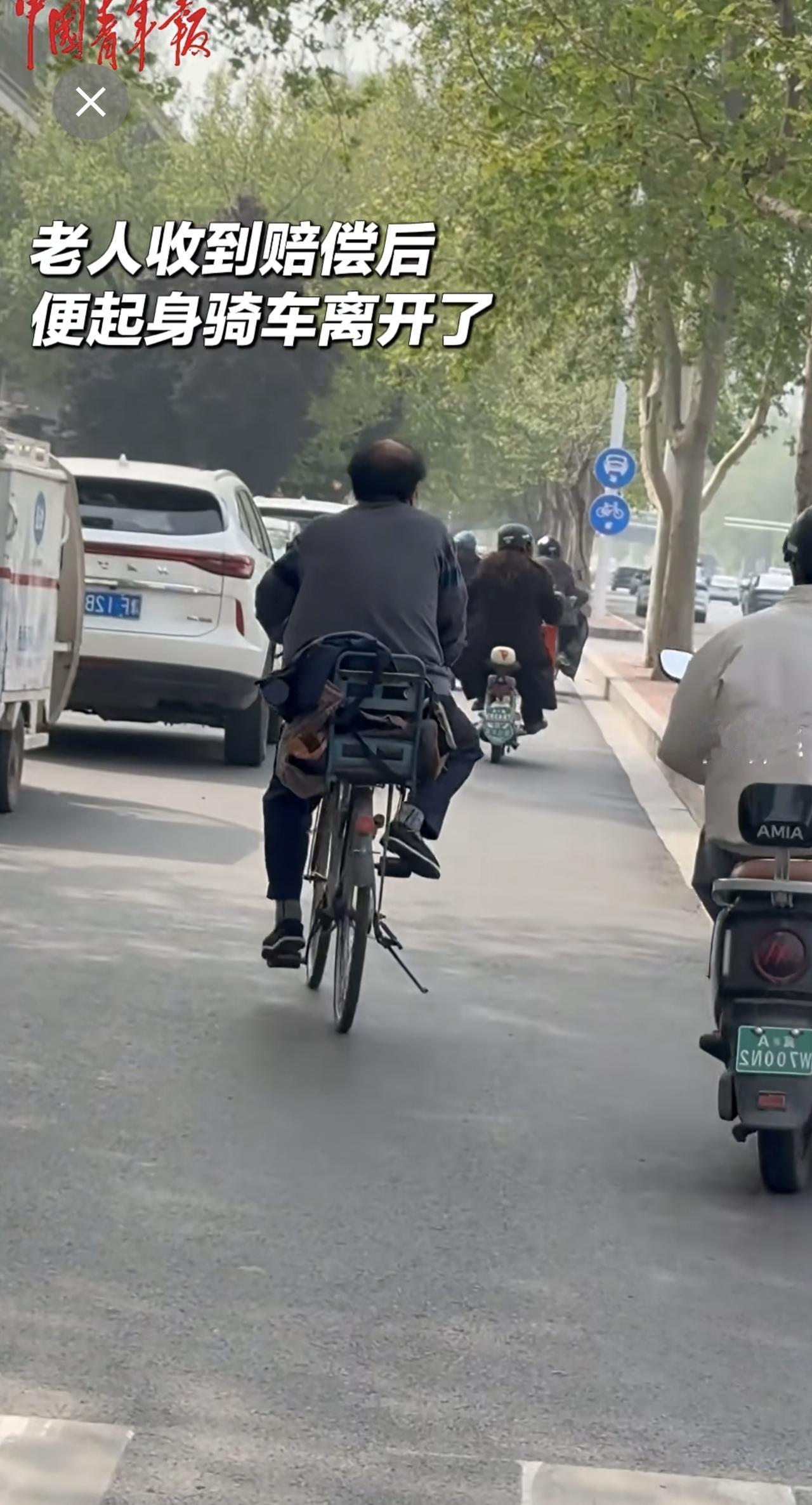 外卖员与老人发生交通纠纷,交警协调后帮外卖员向老人支付赔偿。 (来源:中国青年