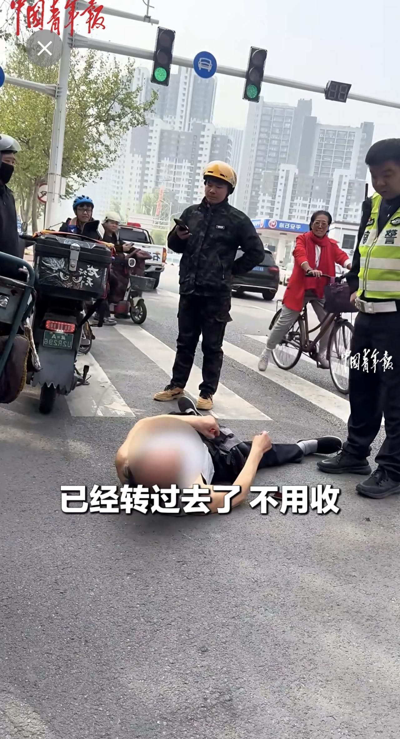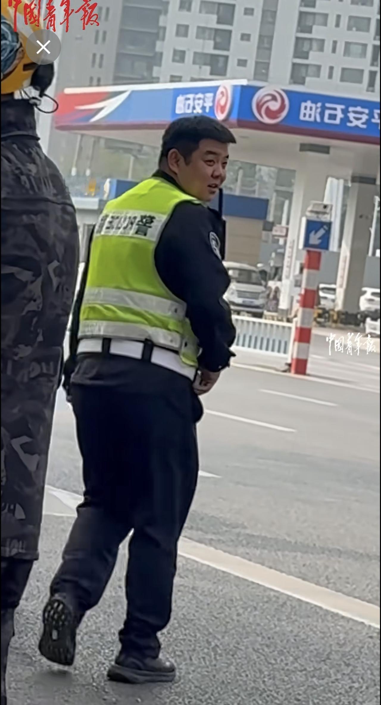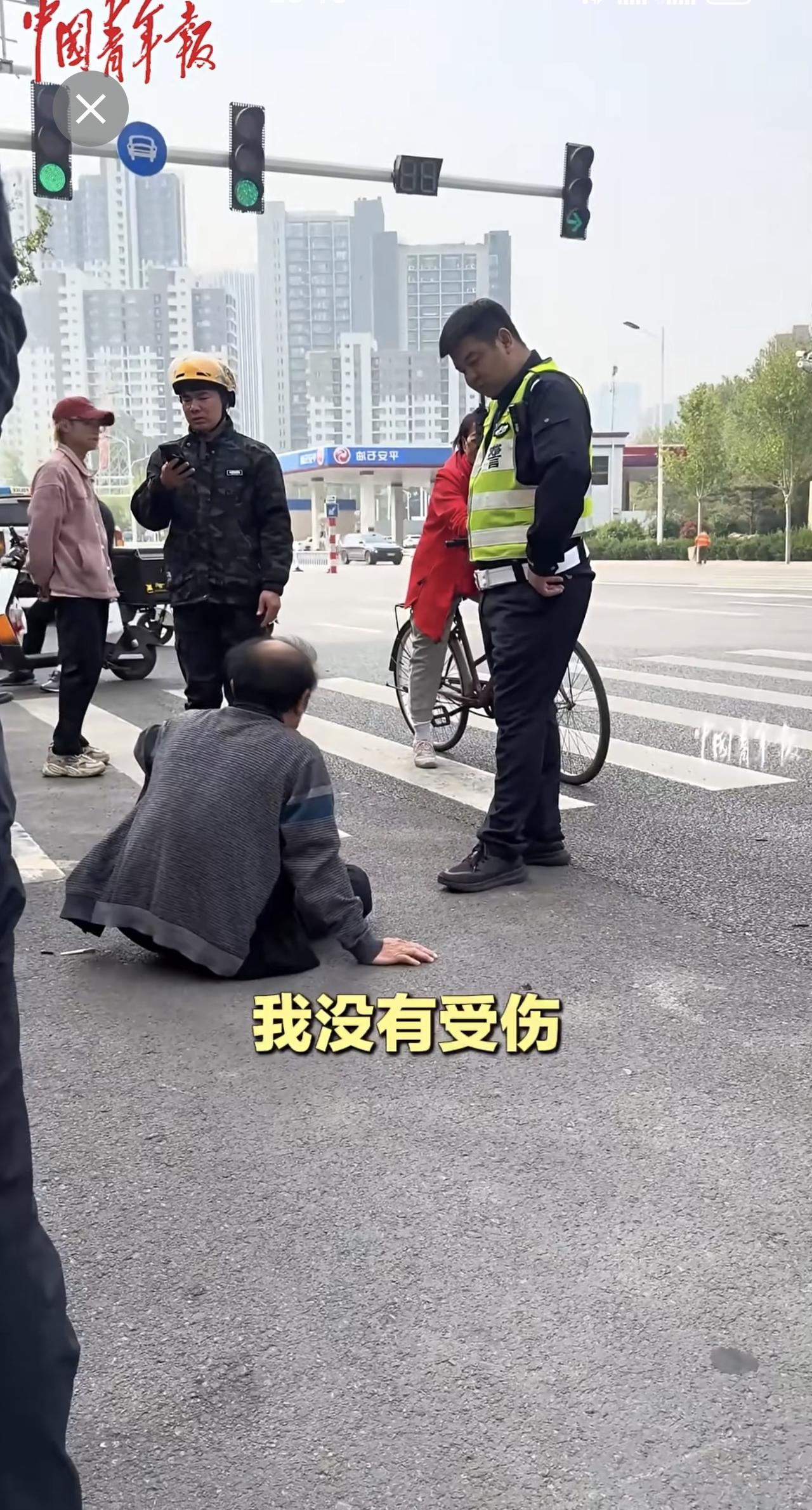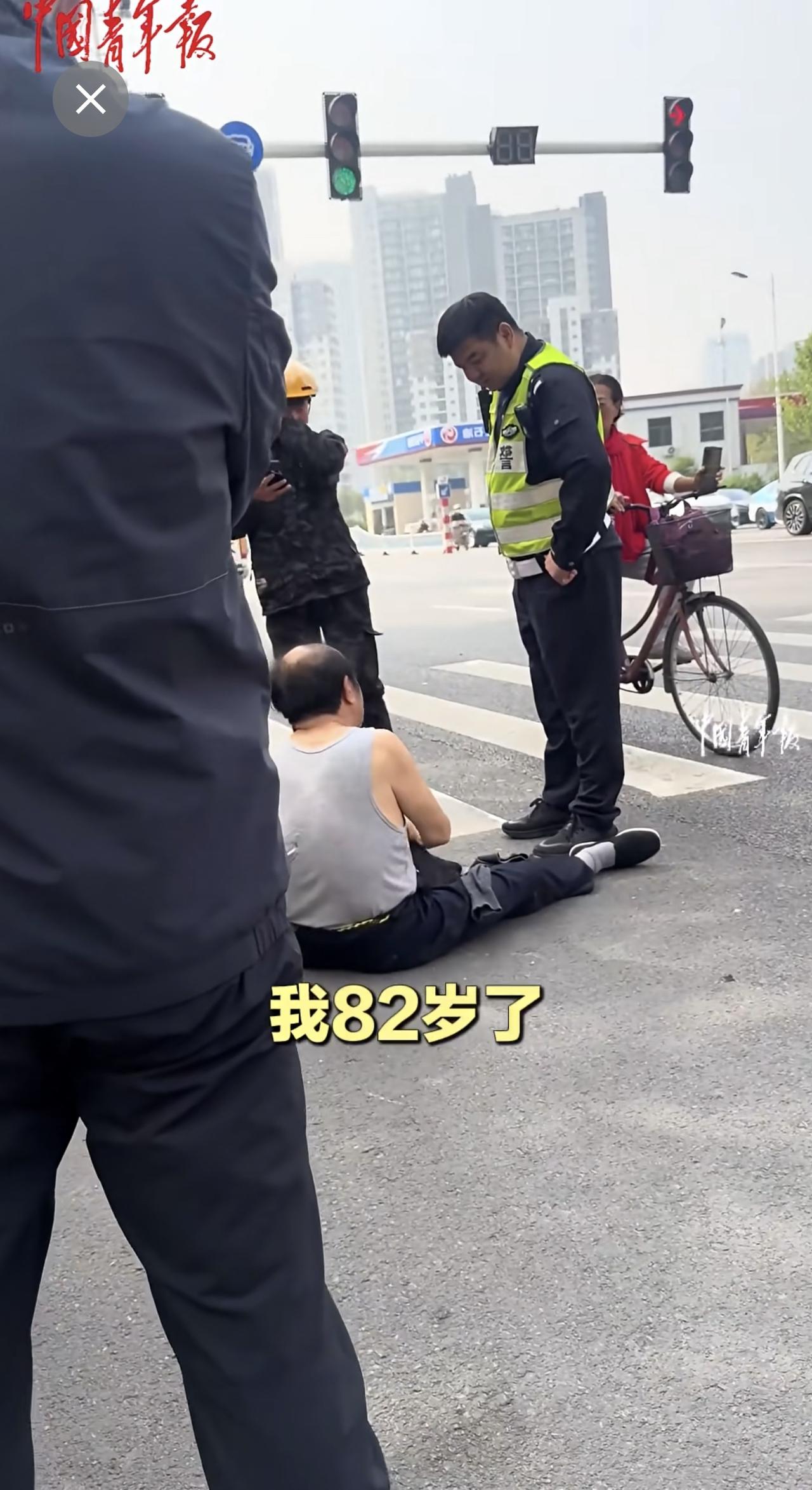 外卖员与老人发生交通纠纷,交警协调后帮外卖员向老人支付赔偿。(来源:中国青年