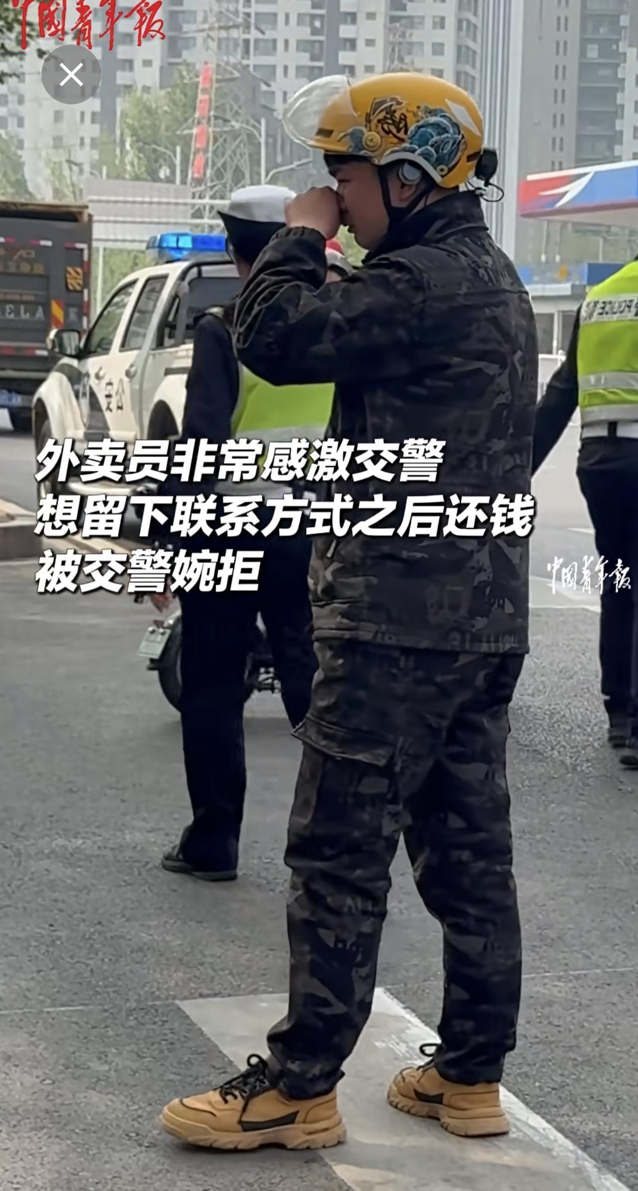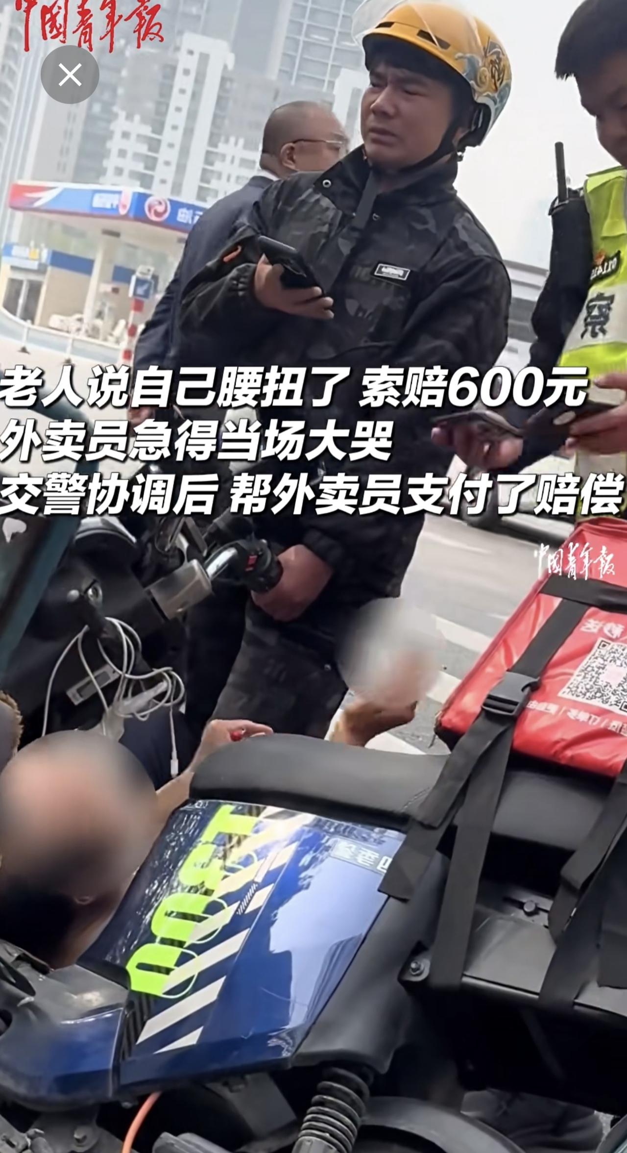 外卖小哥被大爷索赔急哭交警帮赔钱.