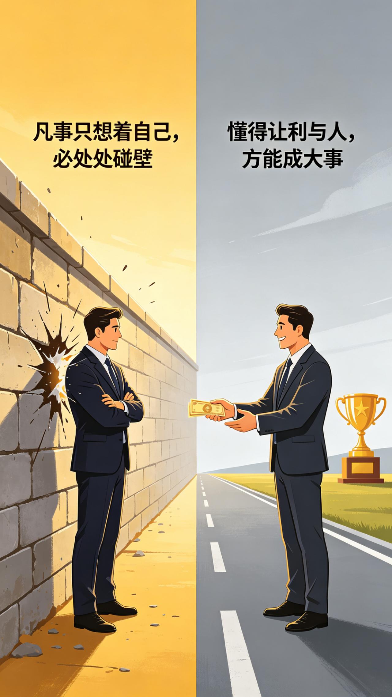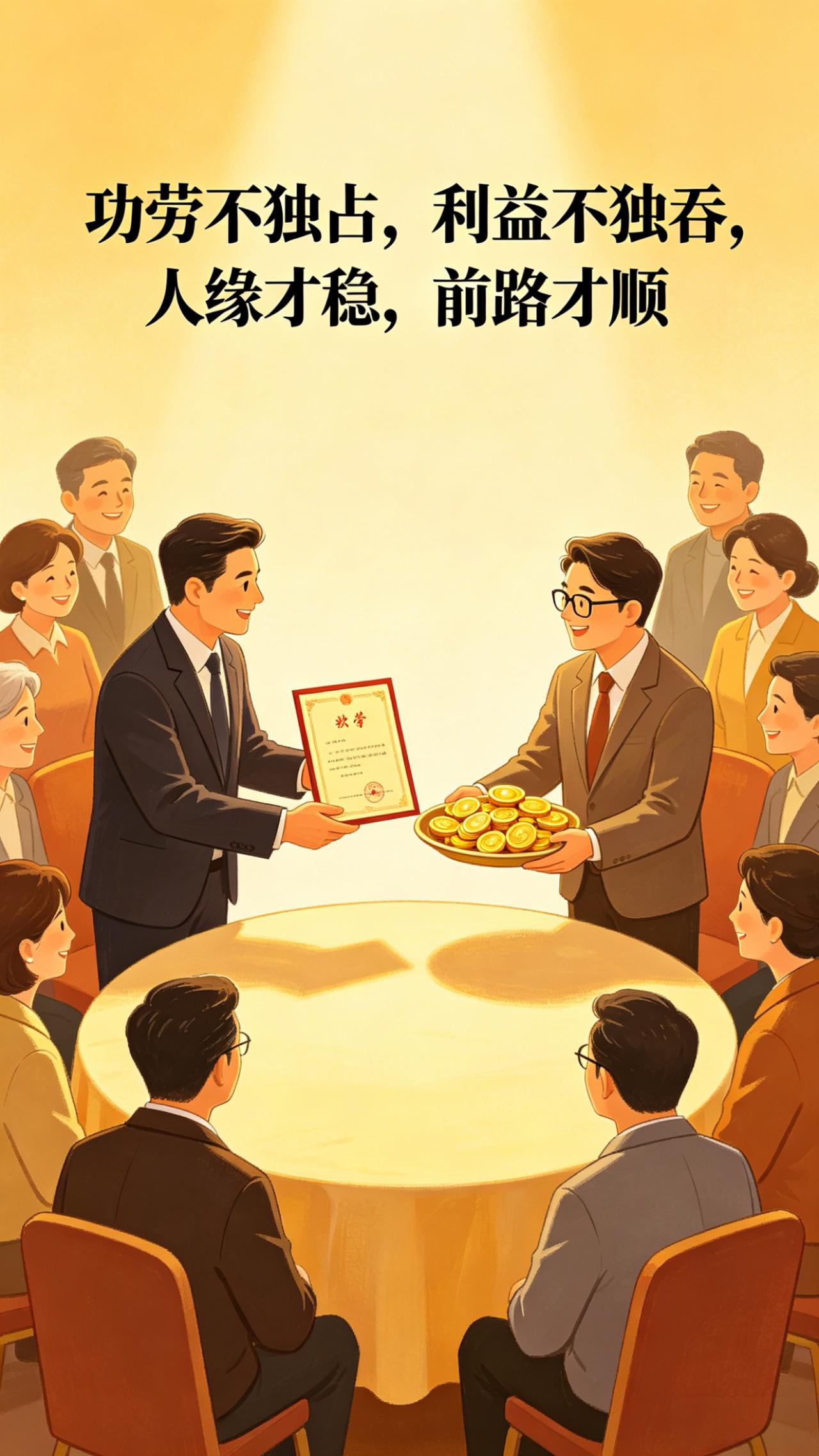 看懂这10张图,你的人生少走90%的弯路 人得了好名声、大功劳,千万别一个人全占了。分点给身边人,大家心里舒坦,你才不容易招人恨、惹麻烦。反过来,要是出了错、惹了脏水,也别急着把自己摘得一干二净,自己多少担着点,别人反而觉得你这人有肩膀、靠得住。 功劳自己全揽完,旁人的脸往哪搁?大家一起分荣誉,关系才长久,路才走得顺。你太耀眼,别人就显黯淡,学会分享成果,人家心里才安稳。凡事只打自己小算盘,早晚撞南墙;肯让点好处给别人,事儿才能越做越大。 犯了错别光想着甩锅。推得干干净净,看着机灵,其实是在慢慢耗光别人对你的信任。你主动站出来说一句“这事我也有份”,哪怕眼下吃点亏,别人反倒高看你一眼。认错不丢人,敢担事是骨气——当然也别傻乎乎啥都往身上揽,守住底线就行。 好事大家分着乐,坏事自己扛一点。这才是做人最聪明、也最养德行的活法。 说白了,道理就一条:好事别独占,坏事别推光。