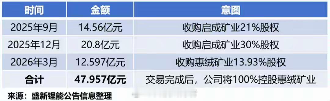 钟汉良回应没离过婚的女人不谈独霸亚洲第一锂矿,锂盐独角兽,野心暴露!盛新锂能,站在反转前夜!3月27日,盛新锂能交出2025年成绩单:公司全年实现营收50.64亿元,同比增长10.54%;但归母净利润亏损8.88亿元,同比增亏42.87%。表面看,这只不过是一份“增收不增利”的平庸答卷。不过别急,真正的看点,在于公司的扣非净利润。2025年,盛新锂能扣非净利润虽仍亏损8.12亿元,但较去年同期收窄9.48%。其中,第四季度扣非净利润率先转正至0.23亿元。这意味着,随着碳酸锂价格迎来“V”型反转,盛新锂能的主营业务在第四季度已经开始赚钱了。那么,除了锂价上涨东风外,盛新锂能自身还做对了什么?说到底,无非以下两点。第一,手里有矿。锂盐行业,资源为王。2025年,锂价呈现“先抑后扬”走势:上半年,碳酸锂价格从年初的7.5万元/吨下跌至6月底的6万元/吨;下半年,碳酸锂价格持续反弹,至年末已上涨至11.9万元/吨。截至2026年4月13日,碳酸锂价格已进一步上涨至16.65万元/吨,较2025年末再次上涨了40%。这种大幅波动的价格走势,让没有自有矿的纯加工企业吃尽苦头。相比之下,盛新锂能凭借持续加码的上游资源布局,在锂价低迷期维持了相对可控的成本水平。那么,盛新锂能上游资源的具体布局是怎样的呢?目前,公司在全球范围内共布局了3大锂矿石项目,分别是:四川奥伊诺锂矿、津巴布韦萨比星锂矿和四川木绒锂矿。其中,四川奥伊诺锂矿和津巴布韦萨比星锂矿产出保持稳定,二者原矿生产规模合计达139.5万吨/年,锂精矿合计达36.5万吨/年。在此产能支撑下,2025年,公司下属子公司锂精矿产量达29.98万吨,同比增长4.82%。不过,最值得关注的,是四川木绒锂矿。2025年,盛新锂能先后通过两次收购,以总计约35.36亿元完成对启成矿业100%控股,间接获得惠绒矿业70.97%股权。随后,在2026年2月,公司再次以12.597亿元收购惠绒矿业13.93%股权。交易完成后,公司将100%控股惠绒矿业。不禁好奇,盛新锂能为何执着于惠绒矿业?事实上,盛新锂能的最终目标是——惠绒矿业拥有的木绒锂矿。木绒锂矿,是四川地区锂矿品位最高的矿山之一,也是亚洲最大的硬岩型单体锂矿。该锂矿已探明的Li2O资源量达98.96万吨,平均品位在1.62%。盛新锂能对该矿设计的生产规模为每年300万吨,这样换算下来大概每年能产7.5万吨碳酸锂当量。随着木绒锂矿的强势补位,盛新锂能的锂资源版图将进一步扩大。凭借自有矿山支撑,2025年公司锂产品毛利率达到18.35%,同比大幅上升15.93个百分点,守住了成本底线。第二,海外有厂。当多数锂企还在国内“内卷”时,盛新锂能已经将触角伸向海外,完成了从资源到产能的全球化布局。截至2025年末,盛新锂能已在全球范围内建立了5个锂产品生产基地,形成了年产13.7万吨锂盐和500吨金属锂的生产能力,产能规模位居全球前列。在这之中,印尼盛拓值得单独一说。印尼盛拓是盛新锂能在海外建成的产能规模最大(年产6万吨锂盐)的矿石提锂项目。2025年8月,该项目开始批量供货。受印尼盛拓锂盐项目供货带动,2025年公司锂产品出货量达7.28万吨,同比增长9.75%;同时库存也增加到1.14万吨,同比大幅增加69.34%。随着该项目产能的快速释放,盛新锂能的海外业务有望进一步扩张。2025年,公司境外实现营收9.42亿元,占总营收的18.59%。比营收占比更值得关注的,是盈利能力的差异。以2025年为例,公司境外业务毛利率为35.17%,远高于境内业务的14.51%。这意味着,海外产能不仅打开了市场空间,更构筑了利润厚度。此外,为持续强化产能优势,盛新锂能还在规划新建年产2万吨碳酸锂项目、2500吨金属锂项目等。当然,反转之路也并非一片坦途!为拿下木绒锂矿及扩张海外产能,公司投入了巨额资金。2025年末,盛新锂能有息负债已高达78.46亿元,是同期货币资金的近3倍;资产负债率也进一步跃升至48.36%。高额的有息负债规模导致公司利息支出上升,在盛新锂能的财务报表中,主要反映为财务费用的增加。2025年,公司财务费用攀升至4.1亿元,同比大幅增长101.97%。其中,利息支出达到2.38亿元。财务费用的翻倍增长,叠加管理费用与销售费用的刚性压力,推动盛新锂能期间费用显著上升。2025年,公司期间费用增长至8.93亿元,期间费用率也攀升至17.64%。由于期间费用率同步走高,大量毛利被财务费用等吞噬,就导致了一个看似矛盾的财务结果:毛利率提升,但净利率下降。2025年,公司毛利率从2024年的2.42%回升至18.35%,但净利润率反而从-13.57%进一步下滑至-17.54%。写在最后!站在反转前夜,盛新锂能的喜与忧一并浮现:第四季度扣非转正、整体毛利率回升,显示经营拐点已至;但高负债推高财务费用,侵蚀了毛利,导致净利仍亏。公司能否彻底走出泥潭,还需时间验证。