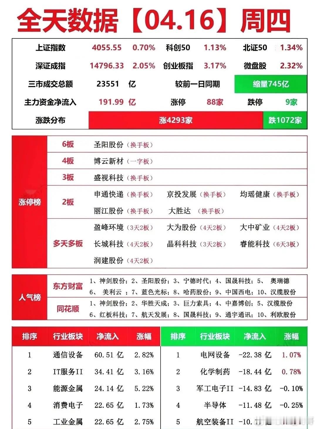 4月16日A股复盘|情绪回暖,AI算力与消费电子领涨,创业板创近11年新高,市场主线清晰!