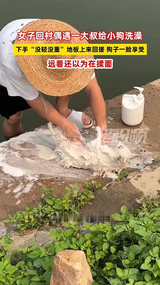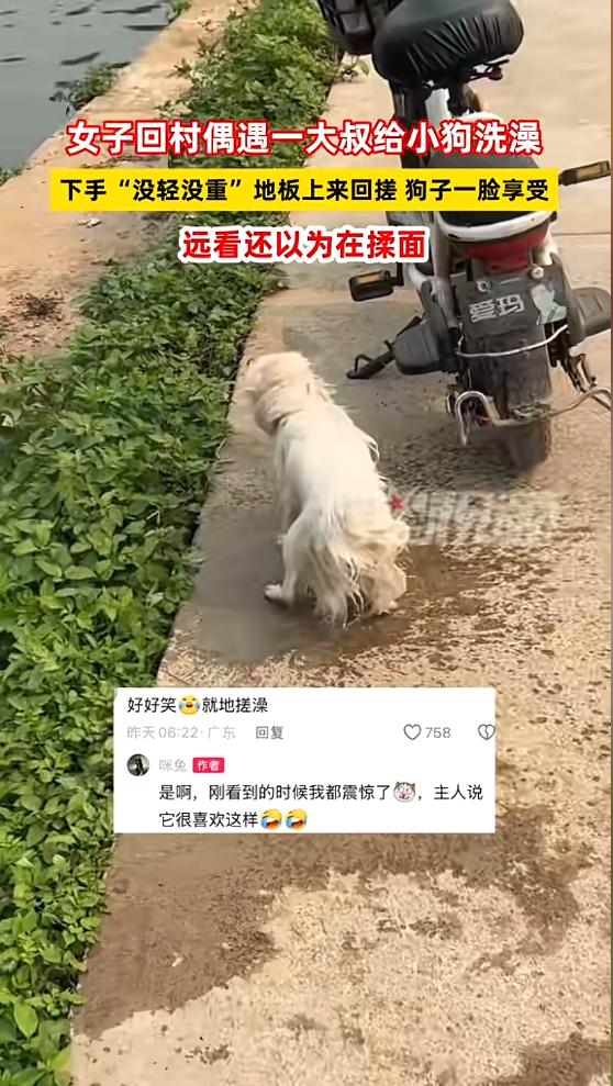 “笑不活了!”近日,广西,一女子回村,看见一名大叔手里拿着一个白色的东西,在地板来回搓,走近一看,发现是一只小狗,看样子好像在给它洗澡,女子很震惊,主要是小狗一点也不反抗,问了大叔,才知道小狗很喜欢这样!网友:还以为在揉面。 事情发生在4月13号,广西的太阳特别烈,热得人都想躲在树荫底下不出来,那位女子趁着有空回村里,走着走着就被树荫底下的一幕吸引住了。 她远远看过去,只见一位大叔蹲在水泥地上,手里拿着一团白乎乎的东西,在地板上来回揉搓,动作不急不缓还挺均匀,乍一看去跟咱们平时在家揉面团一模一样,没什么特别的,路过的村民也都习以为常,还会笑着跟大叔打个招呼,没人觉得这场景有什么稀奇,女子一开始也没多想,就觉得可能是大叔闲得没事,在揉面准备做吃的。 可越往前走,她越觉得不对劲,那团“面团”好像有点软,还偶尔动一下,好奇心驱使着她凑上前去,这一凑近直接笑出了声,哪里是什么面团啊,分明是一只小狗,浑身上下都裹满了泡沫,只露出一双圆溜溜的黑眼睛,看着特别可爱。 大叔的手一直没停,顺着小狗的脊背慢慢搓,又横着抹过它的胸口,连耳朵底下那些不容易洗到的死角都没放过,手法特别熟练,有时候大叔停下来去旁边舀水,小狗还会抬起头,眼神跟着大叔转,那模样,看着就像是在催促大叔赶紧继续,一点都没有抗拒的意思,反而一副很享受的样子。 女子当时就很震惊,毕竟在城里,她也见过不少人养宠物狗,每次给狗洗澡都跟打仗一样,恒温浴缸、进口香波都备着,可狗子还是拼命挣扎,主人洗一次澡下来比狗还累,有时候还会被狗子抓伤,从来没见过这么听话、这么享受洗澡的小狗。 后来她忍不住上前问了大叔,才知道,这只小狗一直都是这样洗澡的,大叔也没有什么特别的技巧,就是顺着小狗的性子来,没想到小狗特别喜欢这种方式,每次洗澡都特别配合,一点都不闹,没有复杂的流程,也没有精致的工具,就这么在水泥地上搓一搓,再放到旁边的河里冲干净泡沫,小狗上岸甩甩水,就欢欢喜喜地跑开了,整个过程也就几分钟。 女子见眼前一幕饶有趣味,遂掏出手机拍下发至网络,她未曾料到这毫无滤镜、质朴无华的视频,竟在全网掀起热潮,迅速火遍各处,视频评论区里,网友们清一色笑喷,其中最火的评论称,乍一看还以为是大叔在揉面,那手法极为标准,若不开个面点铺,着实令人惋惜。 女子觉得这一幕特别有意思,就掏出手机拍了下来,发到了网上,她也没想到这个没有任何滤镜、特别朴实的视频,竟然火遍了全网,视频下面的评论区,清一色都是笑喷的网友,最火的一条评论说,第一眼真以为是大叔在揉面,手法太标准了,不开个面点铺都可惜了。 还有很多网友调侃,说这只小狗怕是投错胎了,把自己当成面团了,不然怎么会这么配合大叔揉搓,也有不少养宠的网友吐槽自己家的狗,说每次给自家狗洗澡都跟渡劫似的,看到这只小狗这么乖,心里又羡慕又无奈。 这个视频之所以能火,大概就是因为它戳中了我们心里最柔软的地方,也让我们看到了最简单的美好,没有复杂的流程,没有刻意的摆拍,就是一个普通的午后,一位大叔,一只小狗,一场简单的洗澡,却治愈了无数在城市里奔波的人,有时候幸福真的很简单,就像这只小狗,能在树荫下被温柔揉搓,就已经很满足了。 (信息来源:《女子回村偶遇一大叔给小狗洗澡,下手“没轻没重”地板上来回搓,狗子一脸享受远看还以为在揉面》星视频)