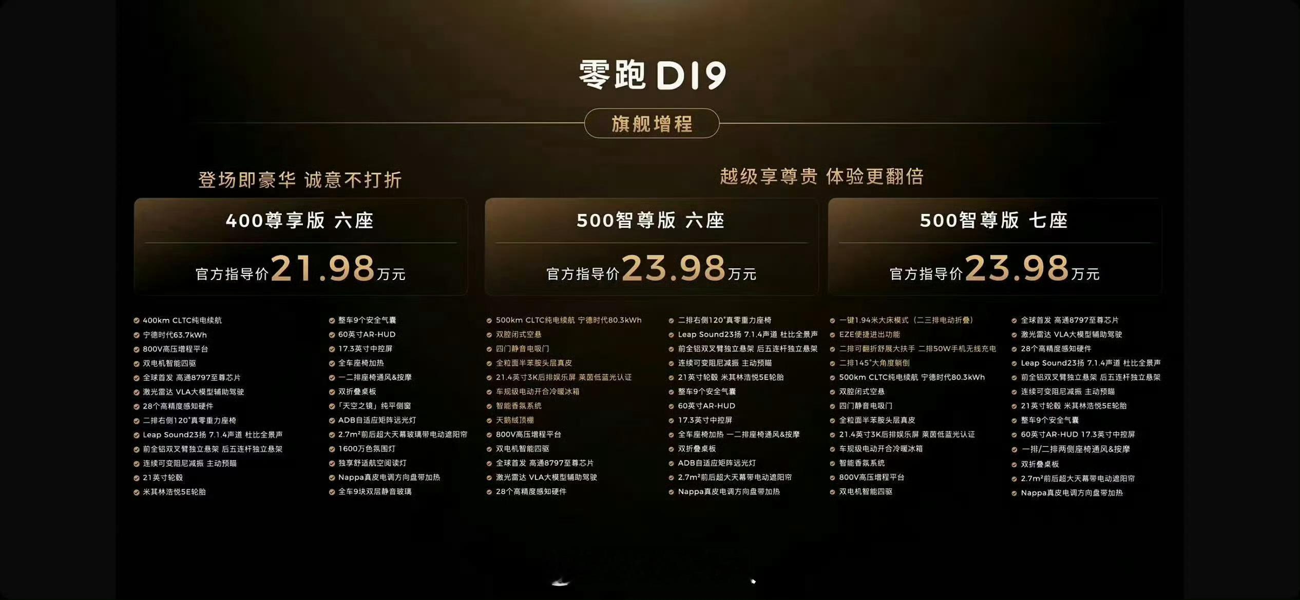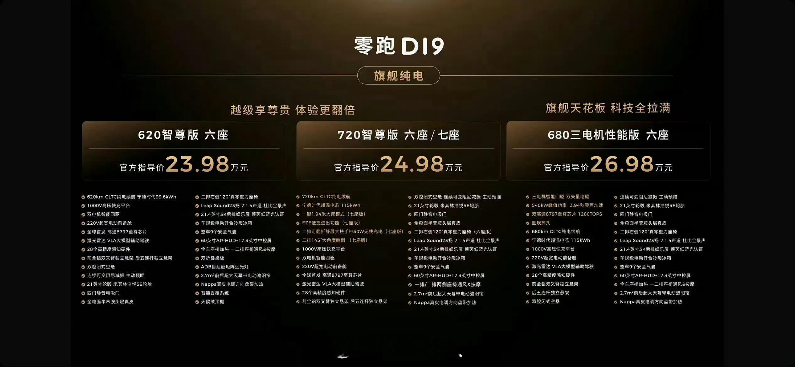 原来9系旗舰SUV价格也能这么香零跑发布会零跑D19满配豪华上市21.98万起 我也偷偷关注了D19这个车,纯电版价格还是蛮香的,720这个版本最值得买。