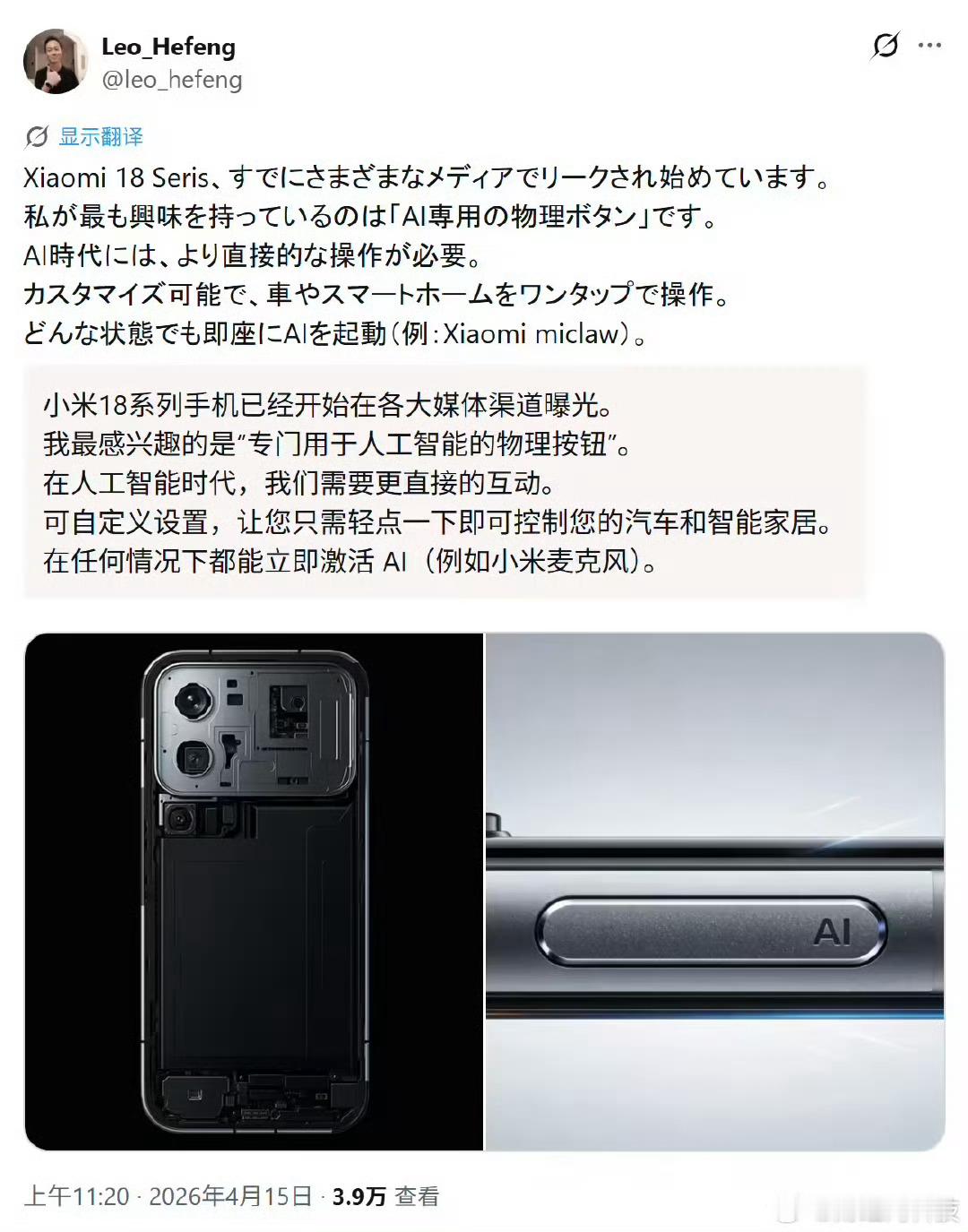 小米18Pro新增AI按键AI是大趋势,看小米有什么创新特色
