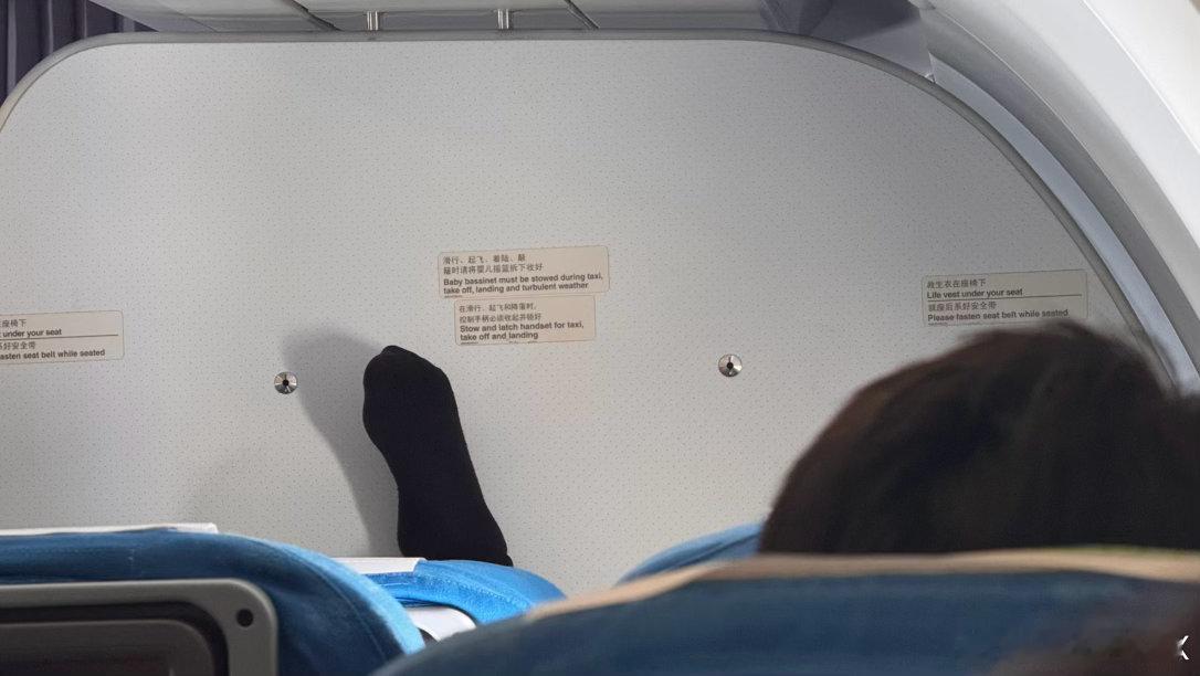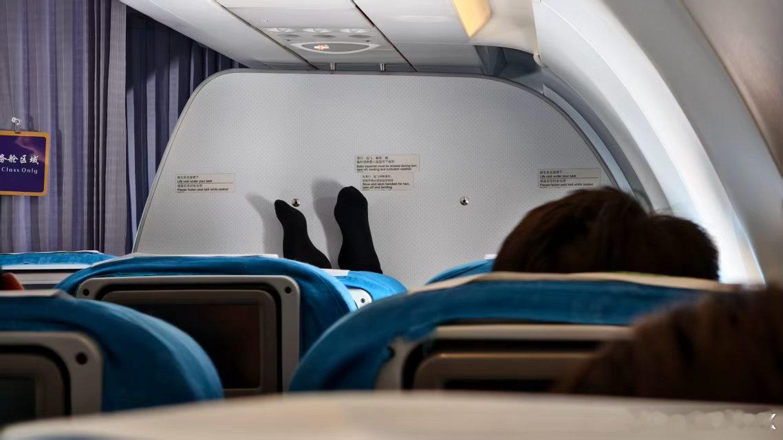为何要这样坐飞机?这样坐第一排会舒服点?脚都快上天了
