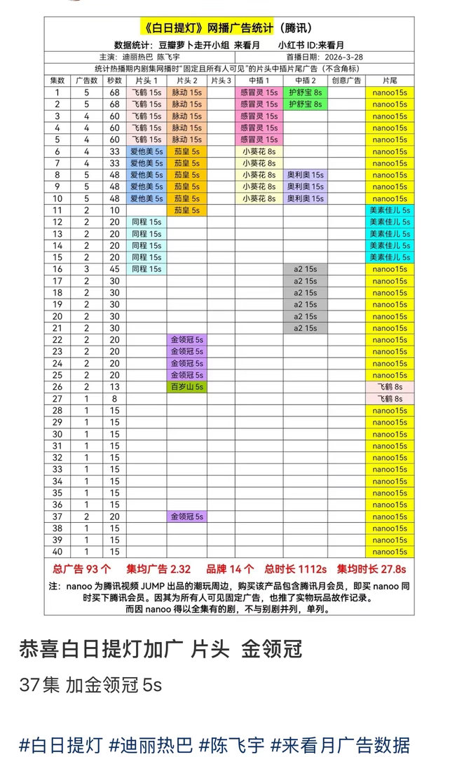 迪丽热巴白日提灯超点后又加广了,这可以说明播得挺好的吧。