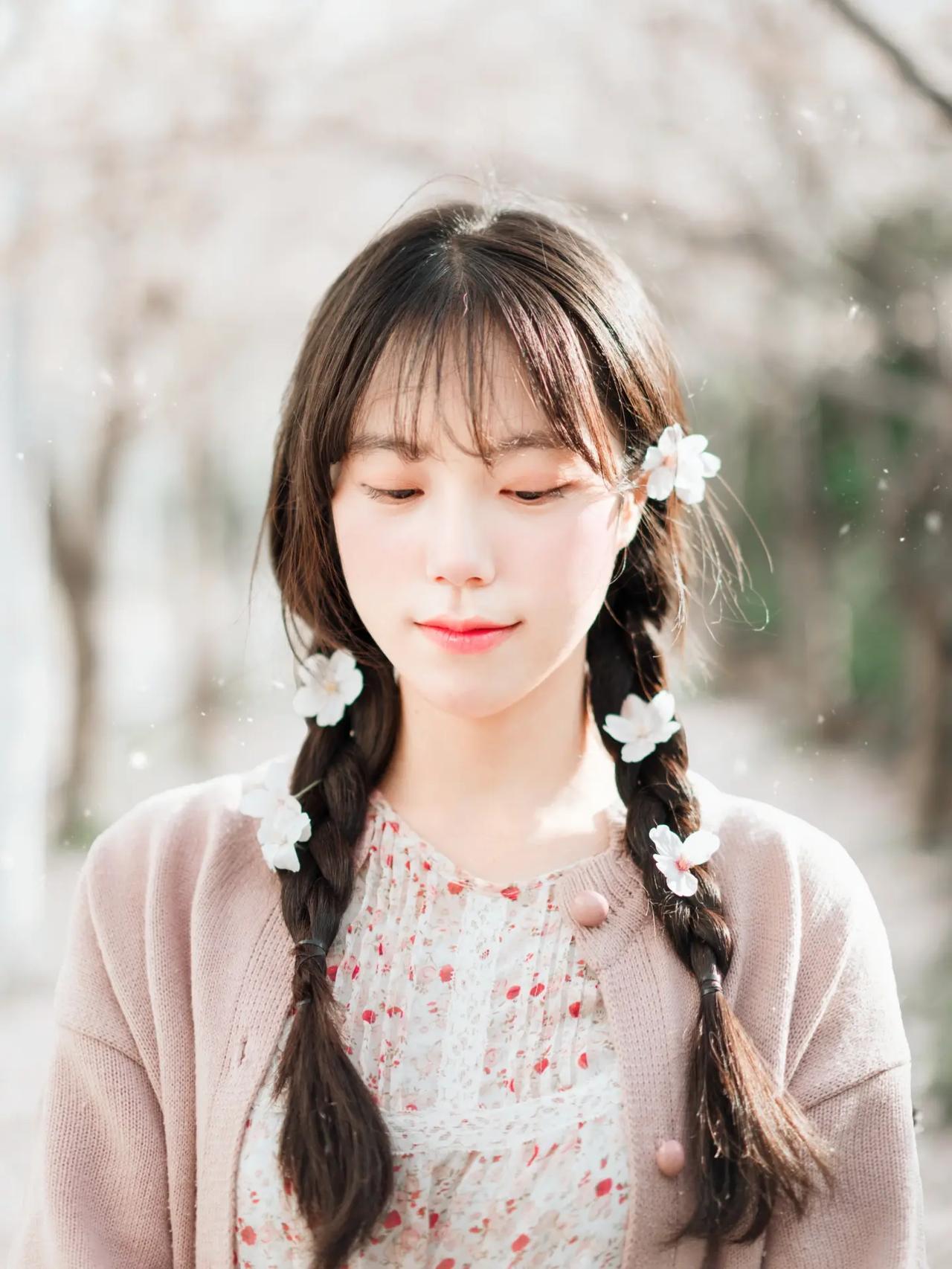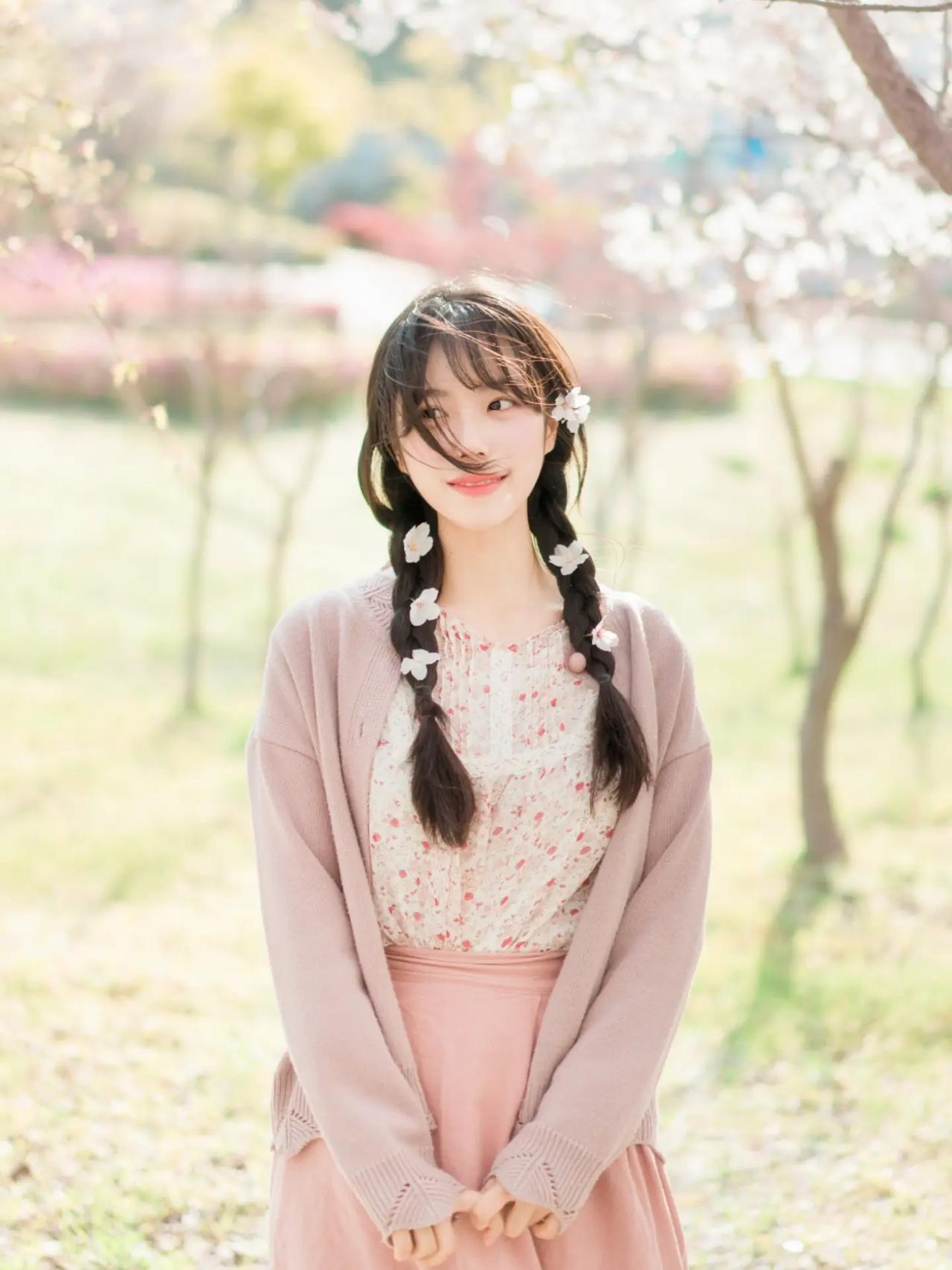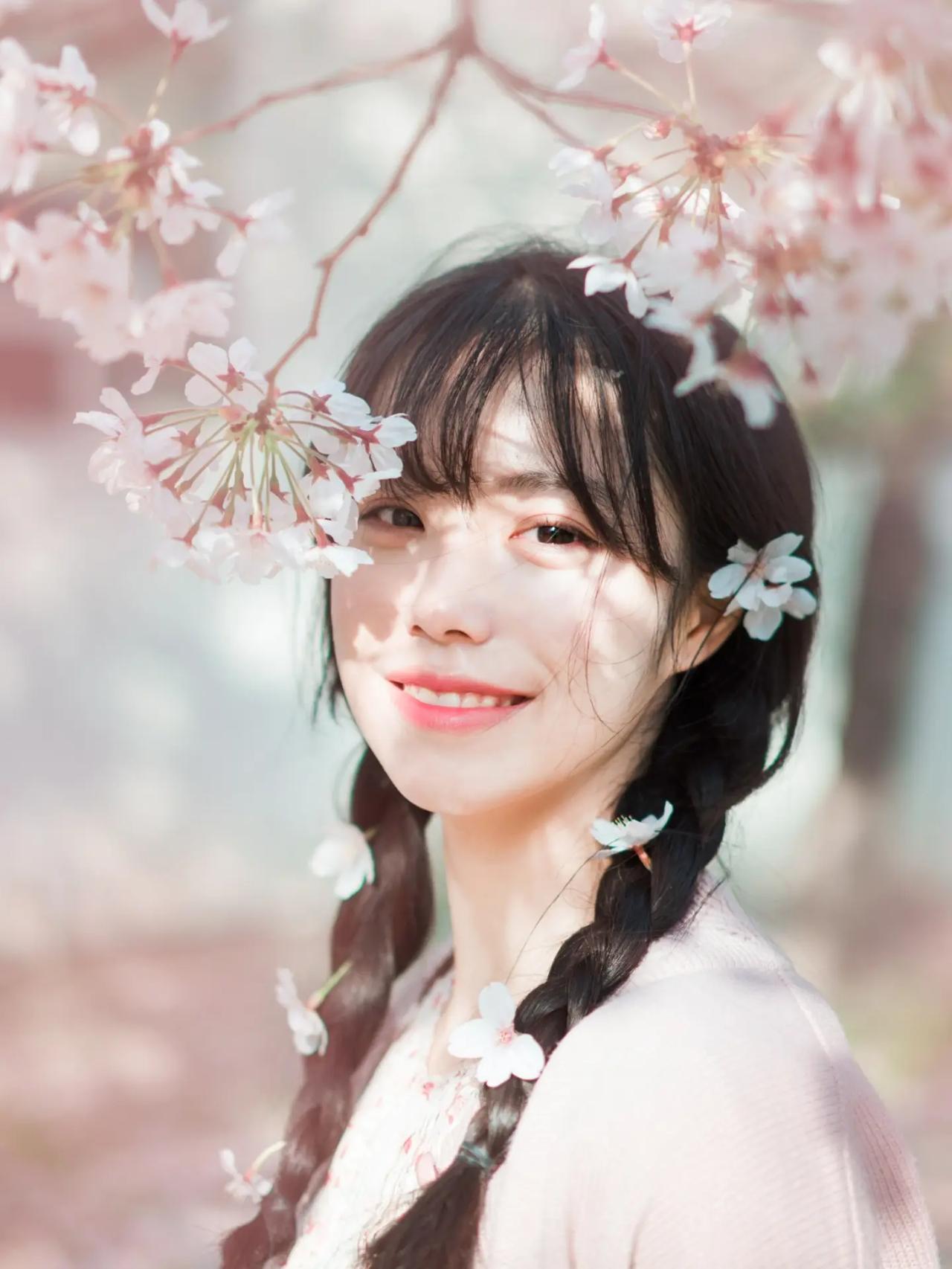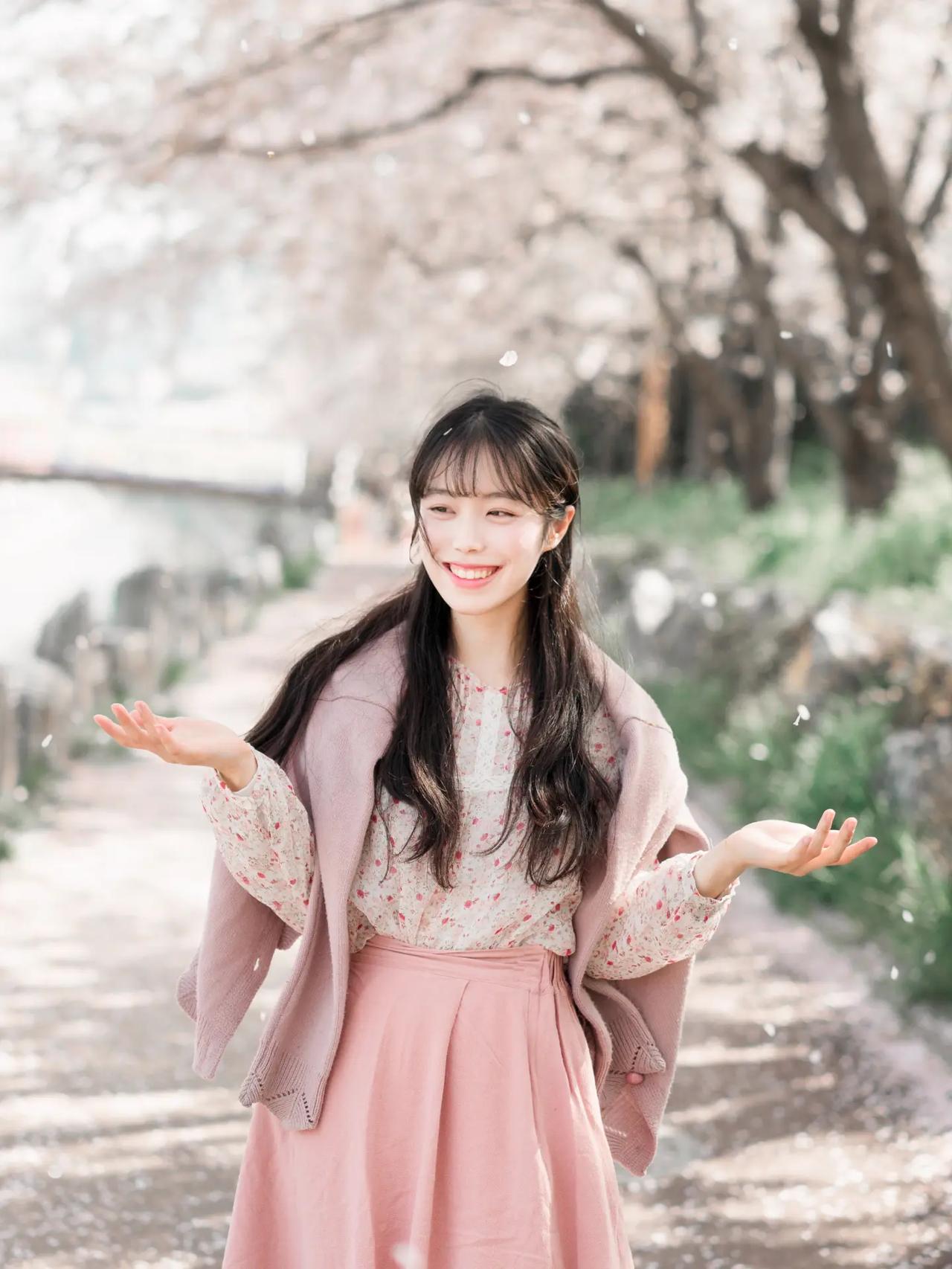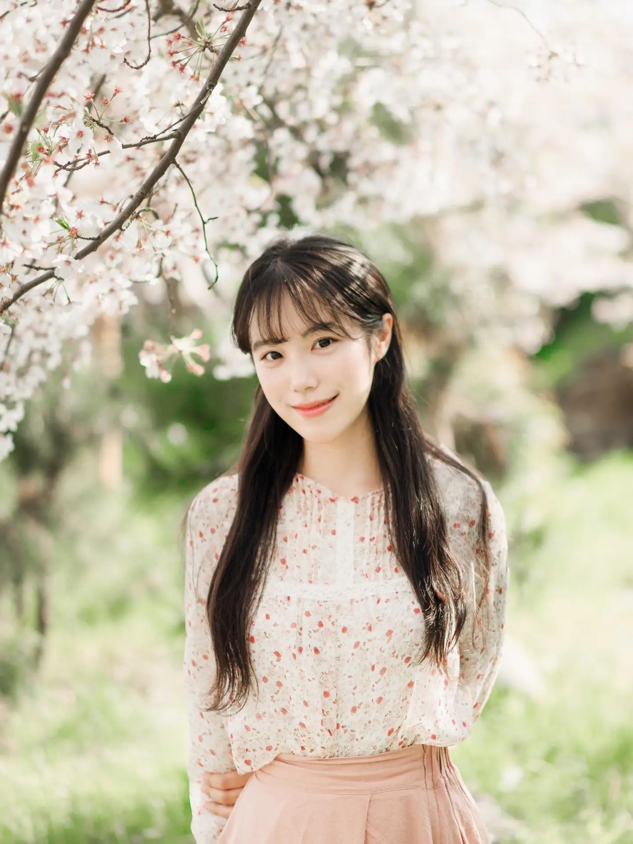 樱花树下,少女轻抚花瓣,温柔如春风。🌸💕精品街拍图片分享