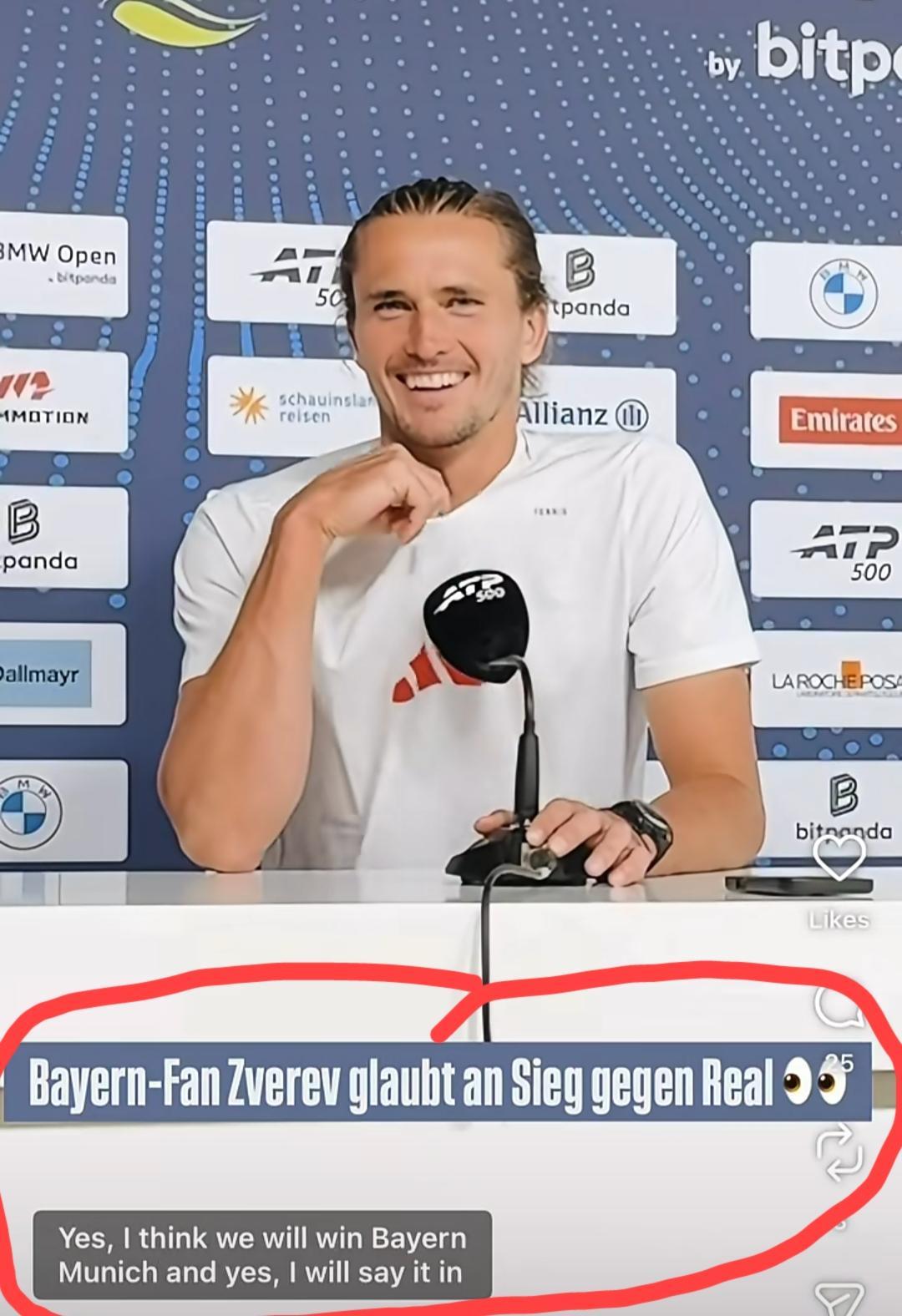 兹维列夫作为德国网球的标杆,ATP500慕尼黑公开赛官方也是对他礼遇有加。他表示拜仁慕尼黑主场打皇马的这场欧冠比赛他要到现场观赛,主办方表示“立刻安排”,当天就给他放了一天假,无论是单打还是双打都没有安排他的比赛。 有网友吐槽:像他们这种高排位的球员,在自己国家举办的相对级别比较低的赛事,也就象征性的打个卡,然后找各种理由退赛,就像昨天阿卡巴塞罗那公开赛不也退赛了吗? 真的是这样吗?