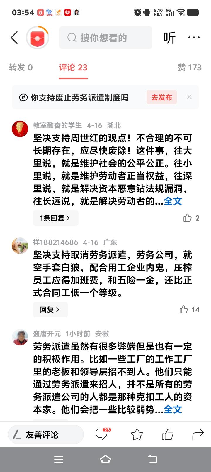 央企劳务派遣6个月红线已定!干了4年还是临时工?别忍了,你被坑惨了! 政协委员周世红一针见血的发言,瞬间点燃了无数打工人的心。劳务派遣,这个本应是临时补充的用工方式,早已在现实中异化成资本逐利的精巧工具。它像一层透明的隔板,将劳动者与应有的尊严和保障无情隔开,让同工同酬成为一纸空谈。 当你和正式工干着一样的活,甚至更累更苦,却拿着少一半的工资,社保按最低档缴纳,年终奖和晋升机会永远与你无关时,那种憋屈和不公感足以吞噬所有热情。这不仅仅是收入的差距,更是对劳动价值的公然贬低。 更令人愤慨的是“逆向派遣”这种操作。企业为了规避责任,强迫老员工与派遣公司签约,多年工龄一夜归零。这哪里是灵活用工?分明是卸磨杀驴,是对劳动者忠诚与付出的最大背叛。资本钻空了法律的缝隙,却寒了千万劳动者的心。 周世红委员提出的“由用工单位直接与劳动者建立劳动关系”,正是拨乱反正的关键一步。这不仅仅是签订合同主体的改变,更是要将劳动者从“二等员工”的身份枷锁中彻底解放出来,让每一份汗水都能直接兑换成应有的回报与尊重。 看看我们身边,多少年轻人怀揣梦想进入看似光鲜的单位,签下的却是一纸派遣合同。他们战战兢兢,努力表现,期盼着转正的那天,却往往在无尽的等待和模糊的承诺中耗尽青春。这种制度性不公,正在无声地消耗社会的活力与信任。 我们必须清醒地认识到,废除劳务派遣的呼吁,绝非否定灵活用工模式本身,而是坚决反对将其异化为长期剥削的挡箭牌。一个健康的社会,不能让一种用工制度,成为拉大收入差距、制造身份鸿沟的帮凶。 劳动者的尊严,需要实实在在的保障来支撑。是时候打破这层无形的壁垒了。当企业能够直接对每一位员工的付出负责,劳资关系才会更健康,社会公平的基石才会更稳固。这不仅仅是为了当下的打工人,更是为了一个更公平、更有希望的未来。 (来源:洵哥综合自网络热点及两会相关提案讨论撰写) 劳务派遣 劳动者权益