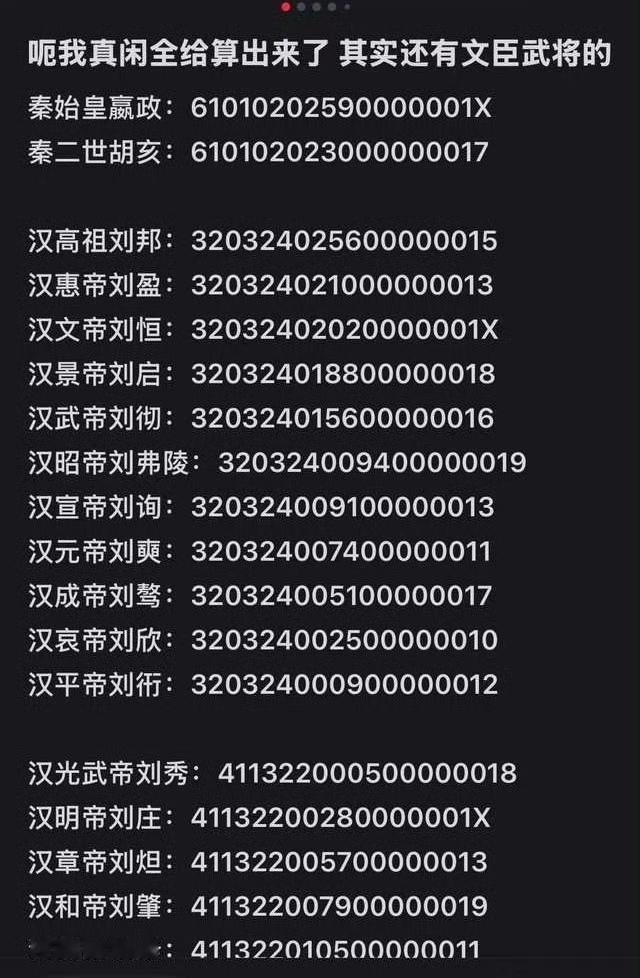 历代皇帝身份证号![尬笑]