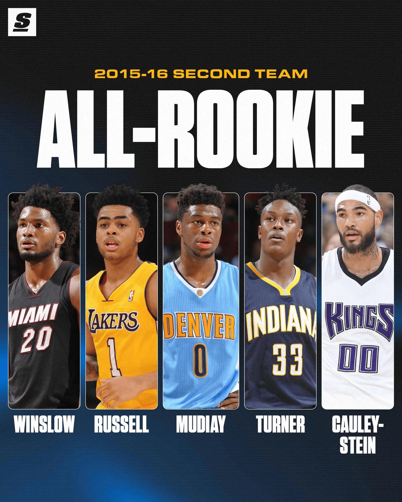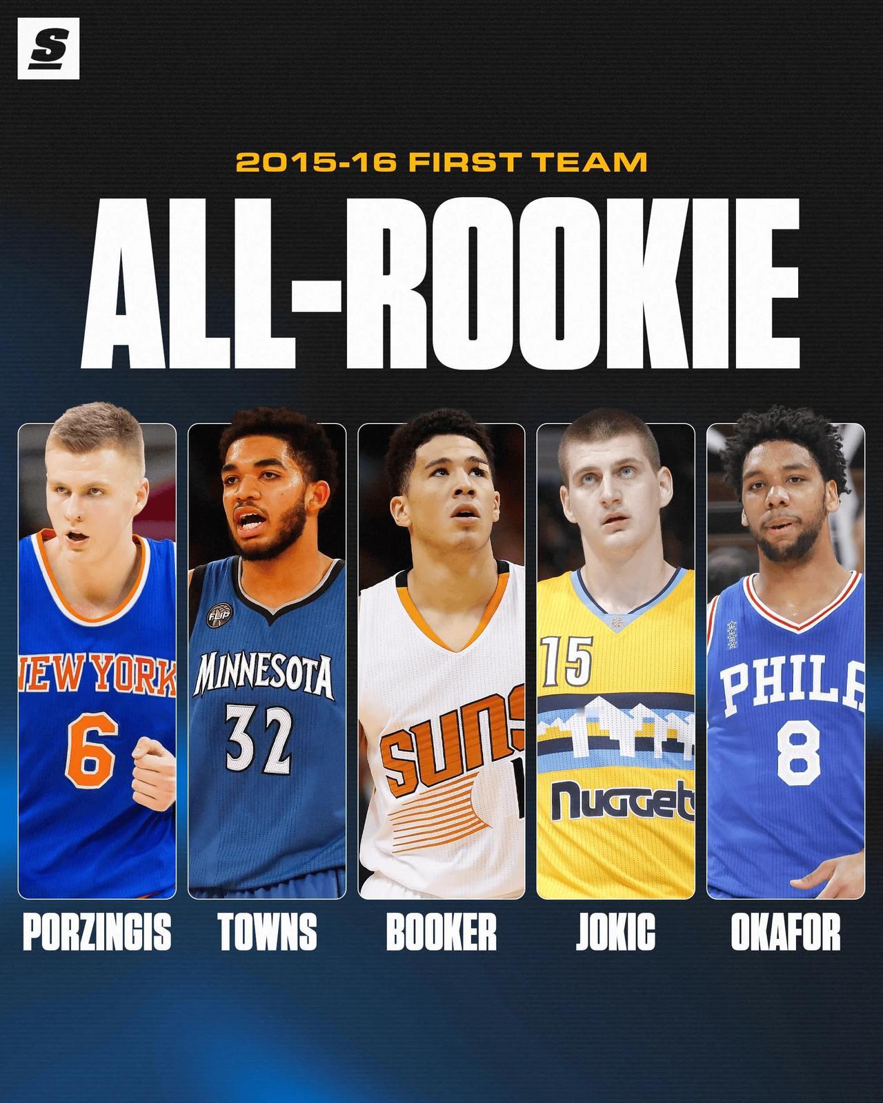 十年前的最佳新秀阵容 最佳新秀一阵为:波尔津吉斯、唐斯、布克、约基奇、奥卡福; 这一届真是内线球员的天下,除了布克一个分卫,其他四人全是内线,奥卡福还是有点可惜了,昔日一度被称为小邓肯啊,如今淡出联盟好多年了! 最佳新秀二阵为:温斯洛、拉塞尔、穆迪埃、特纳和考利斯坦。 有几个都不在联盟了!