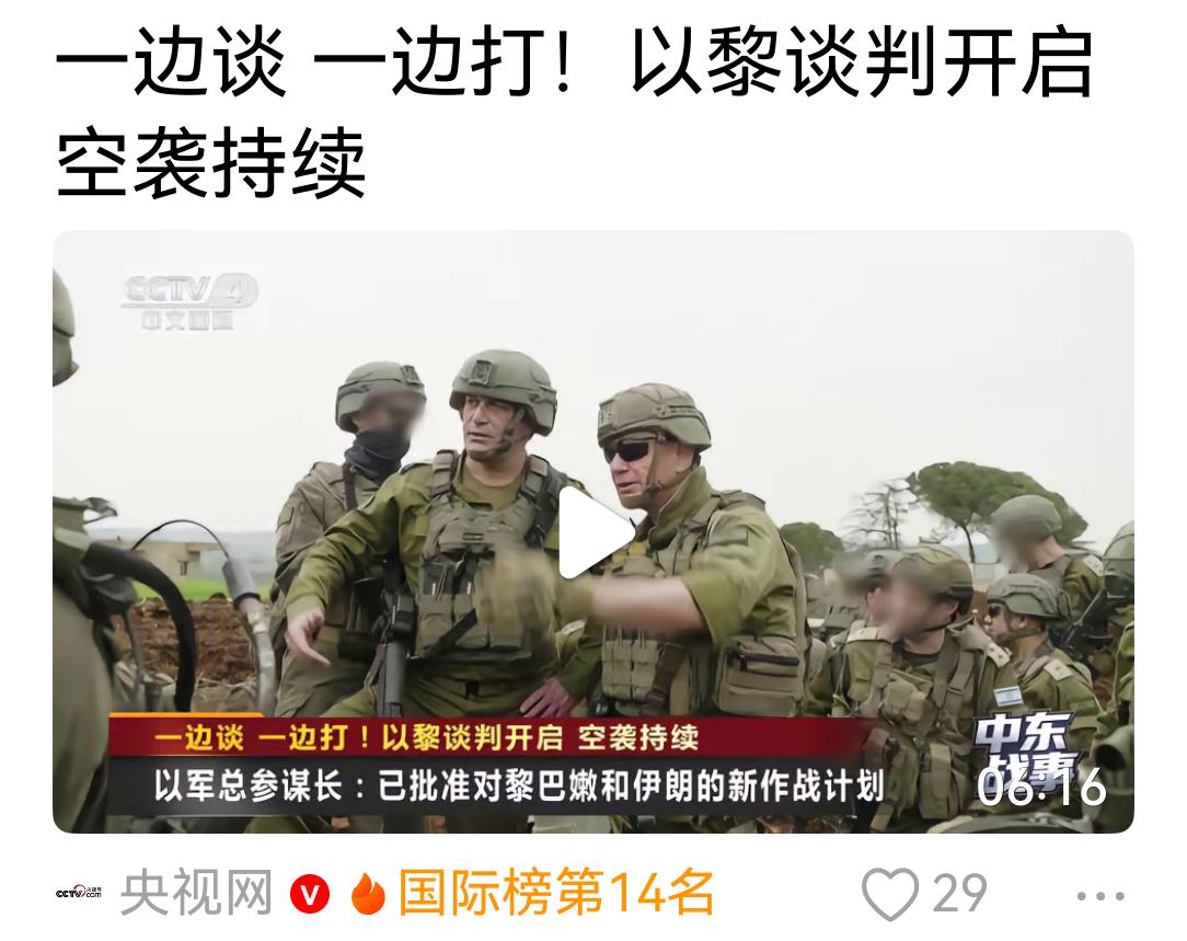 以黎“一边谈一边打”,是以色列与黎巴嫩政府进行谈判,以色列打击黎巴嫩真主党。黎巴嫩真主党是伊朗抉持的一支不受黎巴嫩政府制约与管辖的武装。