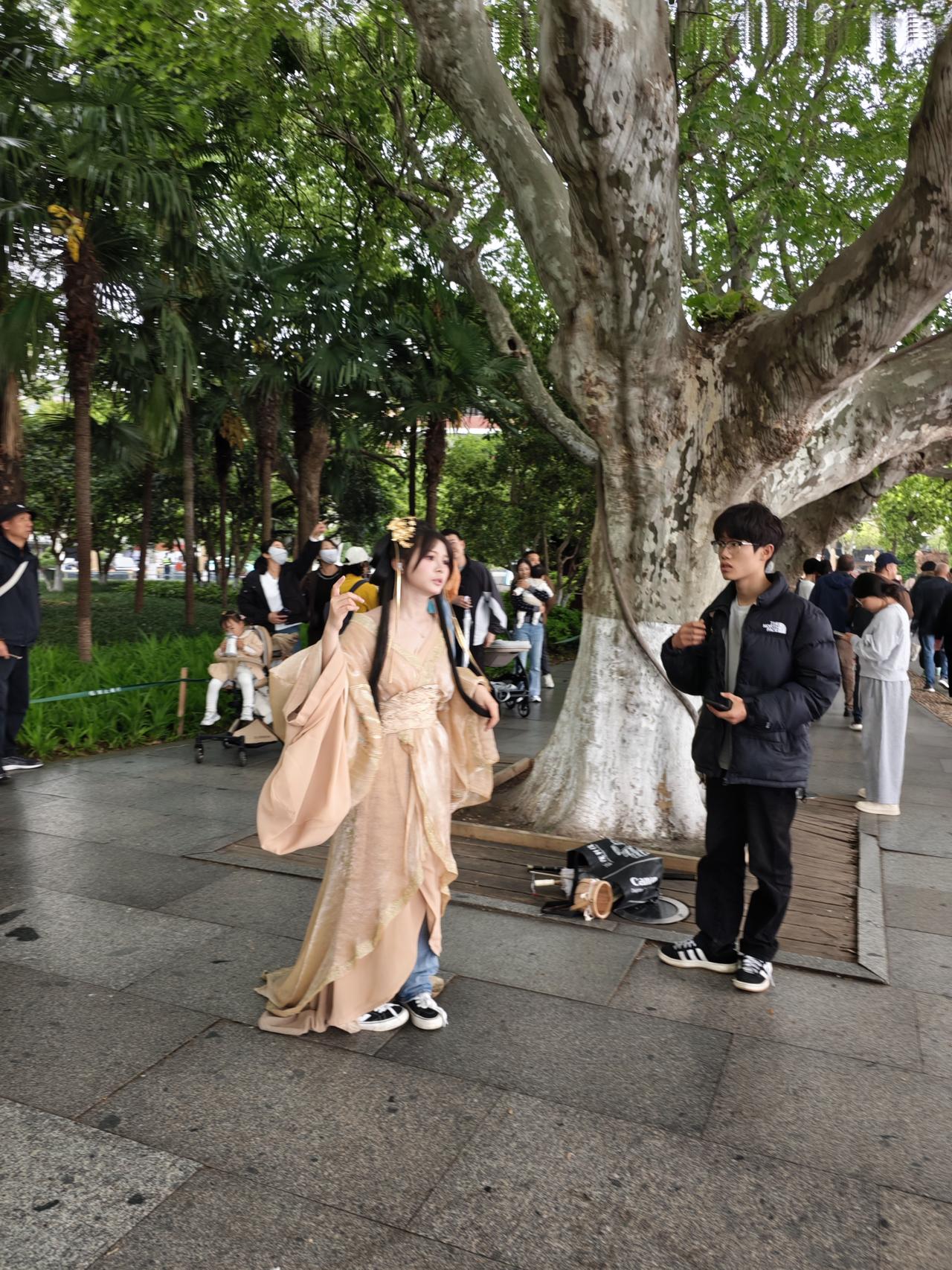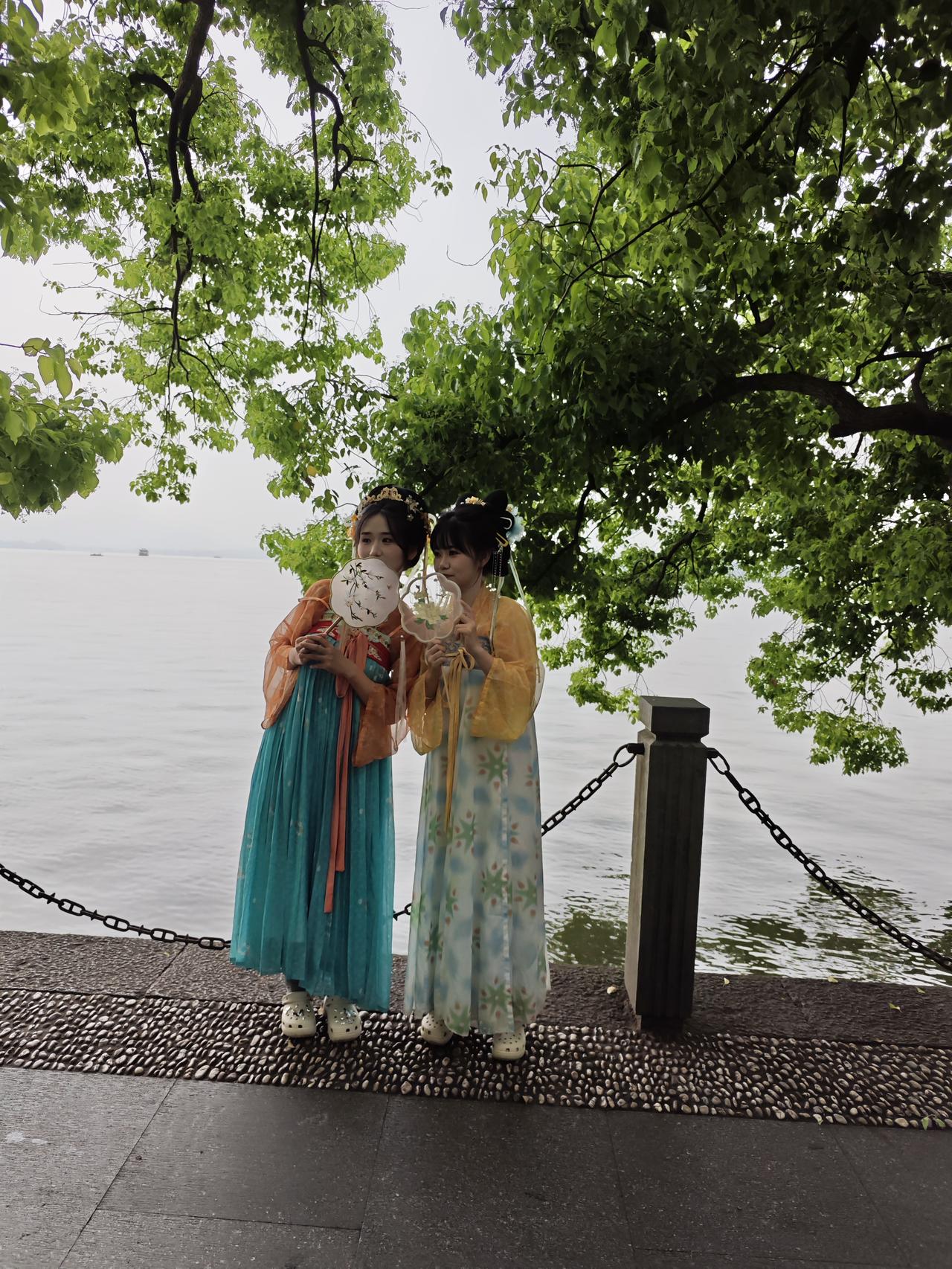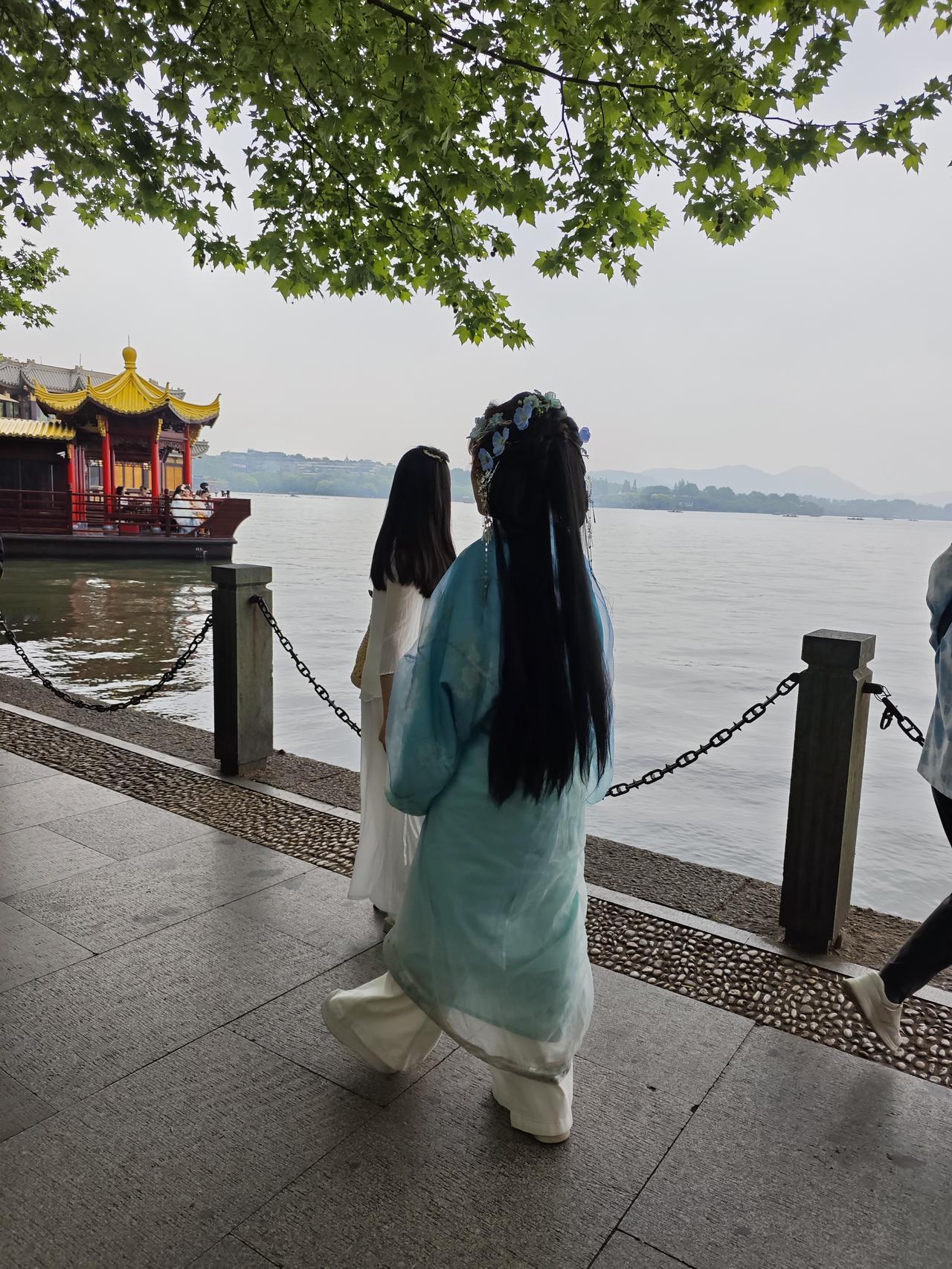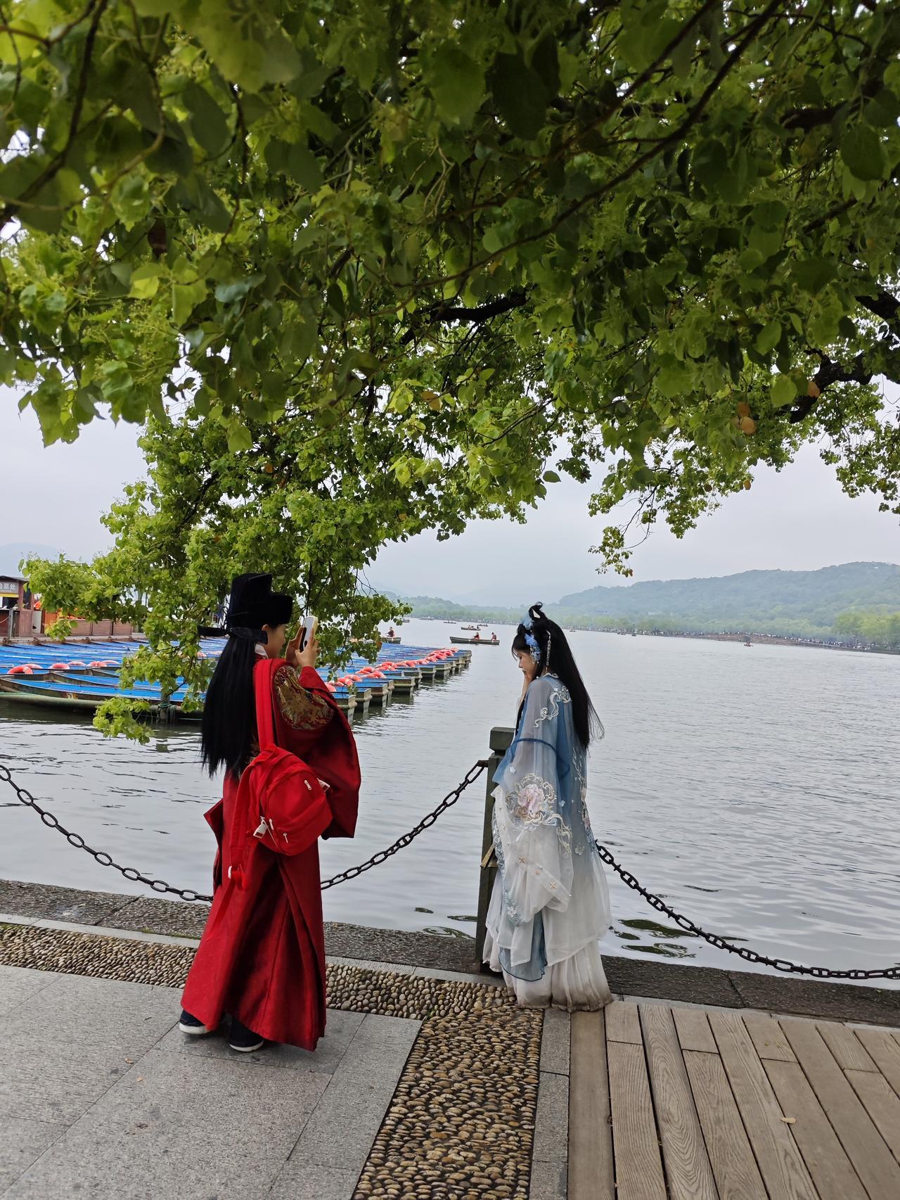 每次来到杭州西湖,首先会来到最热闹的集贤亭,因为在这里会看到穿各种民族服装的美女小姐姐,当然也有大码和老姐姐,除了没有大爷,哈哈!不过有小帅哥也会穿汉服配宝剑,不过呢却没有英气逼人的感觉,只有娘气让人有点失望。