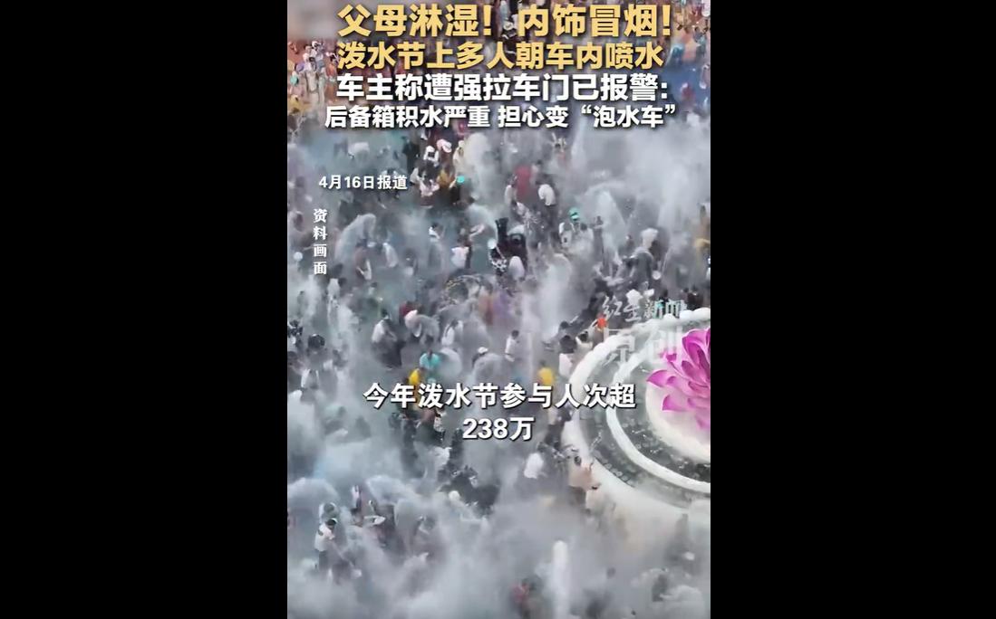 日前,孙女士带年近七旬父母在西双版纳旅游,恰逢泼水节,行驶途中被人群强行拉开车门及后备箱,大量泼水导致父母全身湿透,刚买不久的车辆内饰进水、后备箱积水,恐被认定为“泡水车”影响价值。 孙女士已报警,称若有损失将追责。 文旅局回应,泼水节参与人次超238万,管控难度大,违法行为公安会介入处理。 好好的泼水节,愣是被一群没素质的人玩成了“施暴节”,强拉车门、往车里泼水,不仅没尊重,还毁人财物,纯属没教养、没底线,恶心到骨子里! 那些没素质的泼水者,你们是来过节的,还是来耍流氓的? 泼水节的寓意是祈福、送祝福,不是强行骚扰、损坏别人财物! 人家好好开车,没招你没惹你,你们一群人一拥而上,强拉车门、往车里猛泼水,把年近七旬的老人浇得浑身湿透,把人家新车泡得可能变“泡水车”,良心被狗吃了? 可是文旅局的回应,一句“管控难度大”,是不是太敷衍了? 参与人次多不是借口,难管控不是放任没素质行为的理由! 既然知道人多,就该提前做好预案,安排足够人手维持秩序,明确规定不能强行拉车门、不能往车内泼水,而不是等出了事,才来事后诸葛亮。 最后劝那些没素质的人,别再拿“过节”当挡箭牌,民俗不是流氓的遮羞布,尊重别人才是最基本的底线! 也劝当地相关部门,别再敷衍了事,加强管控、严肃追责,让没素质的人付出代价,别让一场祈福的节日,变成游客的噩梦,别砸了西双版纳的旅游招牌!