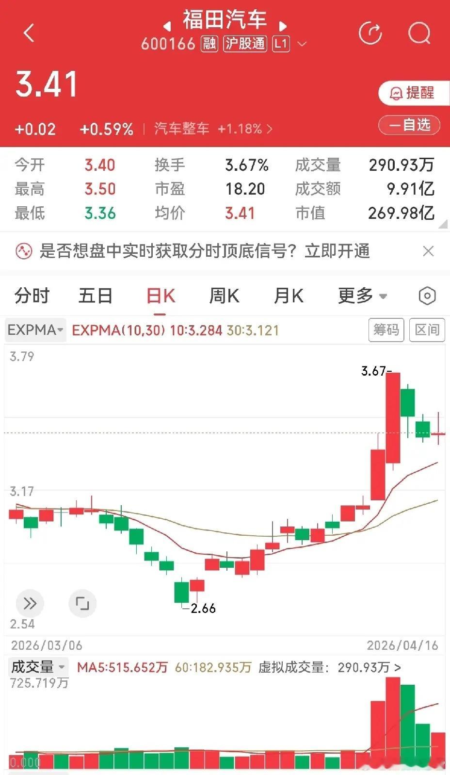 福田汽车缩量震荡,单阳支撑尚未跌破,静待今日支撑能否稳住就好。