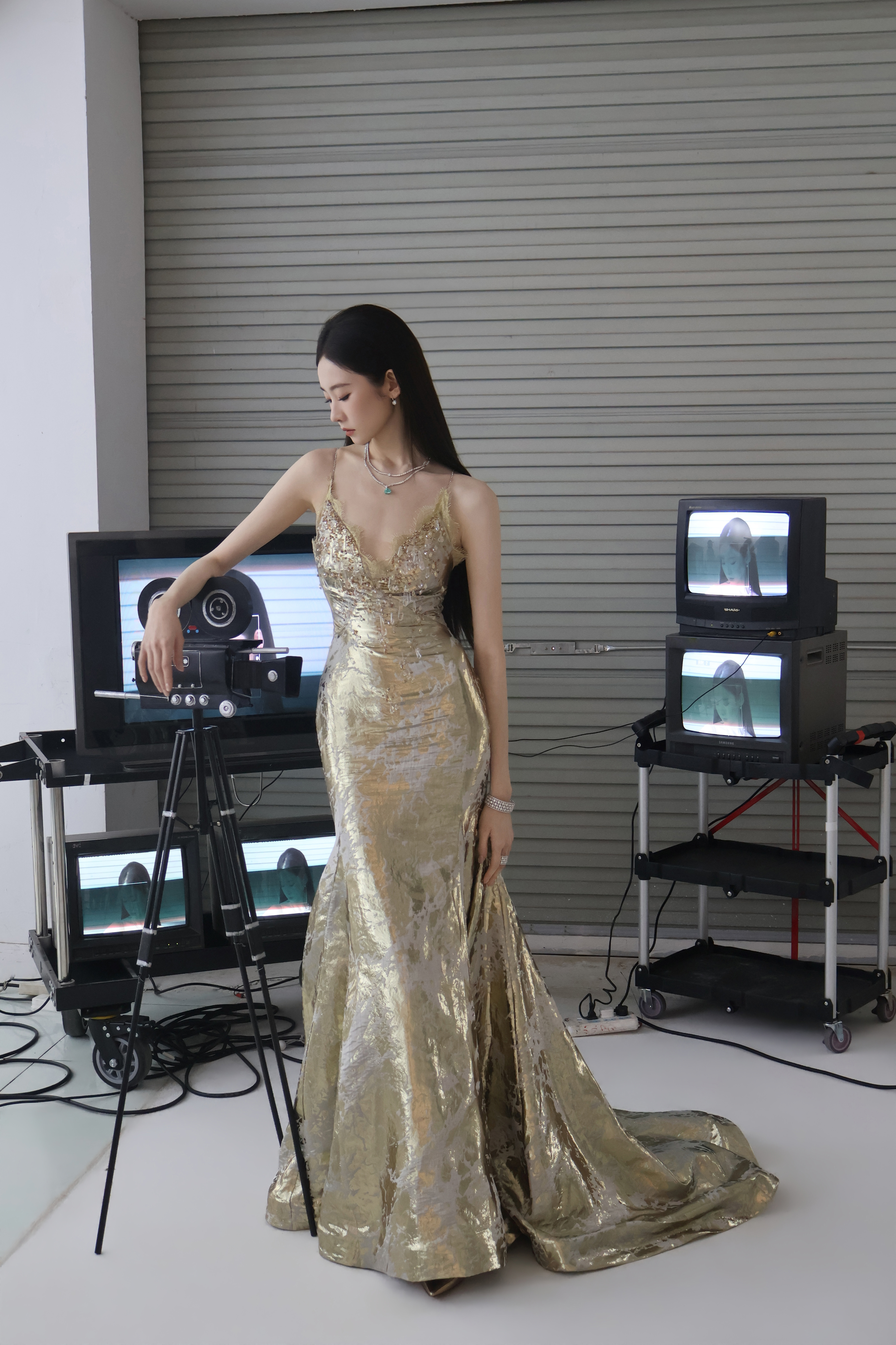 北京国际电影节这波造型太绝!🔥一袭墨绿丝绒长裙亮相,将奢华与性感完美融合。修
