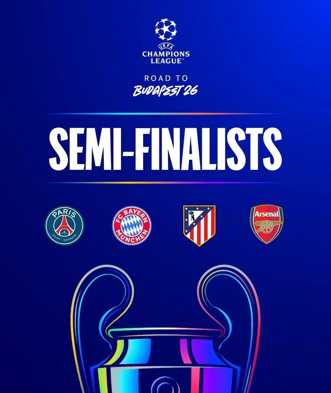 欧冠4强:巴黎、拜仁、马竞、阿森纳