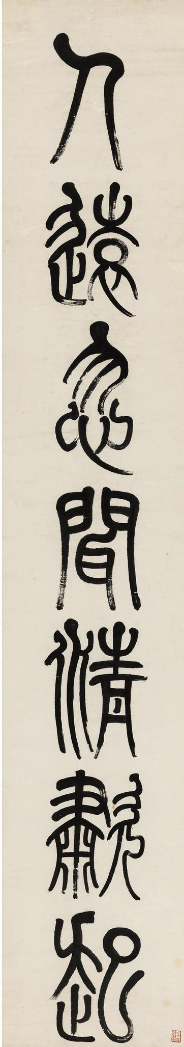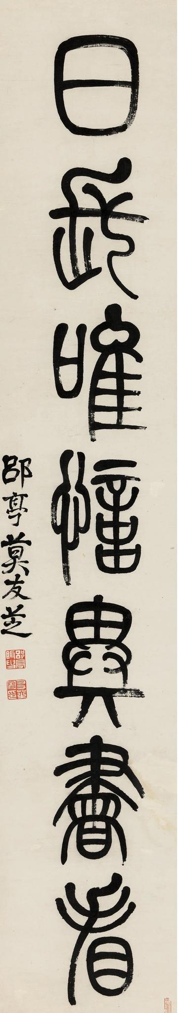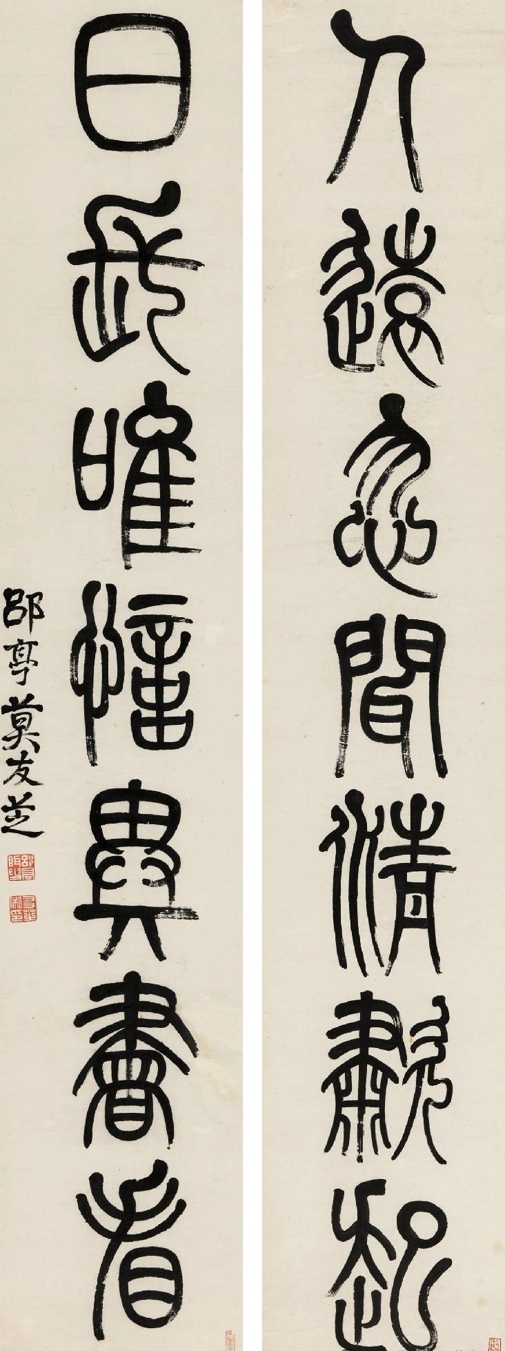 吴昌硕 篆书九言联 “恨无十年暇熟读奇书,幸有两眼明广交益友。” 白蕉 行书 十