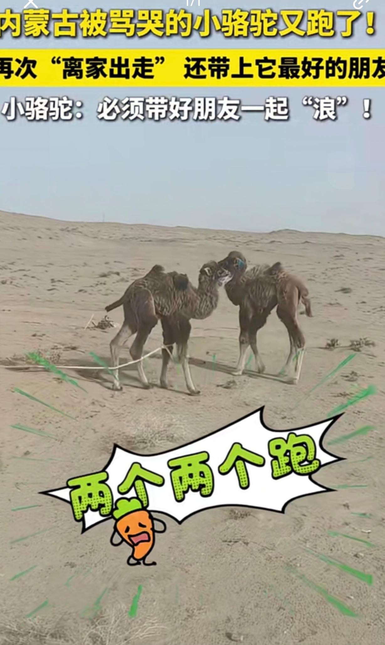 内蒙古小骆驼走失被找回,挨骂后委屈哭了 小骆驼被骂哭了 治愈瞬间 内蒙古阿拉善右旗的一只小骆驼,最近成了全网“顶流”。 这只小骆驼因为被同伴排挤,不小心走丢了。主人顺着脚印在沙漠里找了整整一天,走了快10公里,终于在荒野里找到了它。又气又心疼的主人,忍不住对着它训了几句:“你要是人,我真想给你两巴掌!” 谁也没想到,刚刚还在沙漠里独自硬撑的小骆驼,被主人一骂,竟然当场委屈巴巴地哭了起来,眼泪顺着脸颊往下掉,看着又可怜又好笑。 视频一曝光,瞬间戳中了无数网友的心。大家纷纷留言:“这不就是小时候犯了错被爸妈骂,又害怕又委屈的我吗?”“它不是被骂哭的,是终于找到主人,安全感回来了才敢哭吧。” 其实,动物的感情远比我们想象的细腻。它在沙漠里独自面对寒冷和危险都没怕过,可回到主人身边,听到一句责备,所有的坚强瞬间就破防了。这种又怕又依赖的样子,真的太治愈了。 你被这只“哭包小骆驼”戳中了吗?评论区说说你的看法!