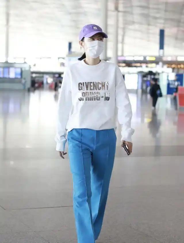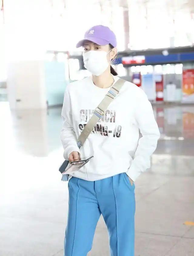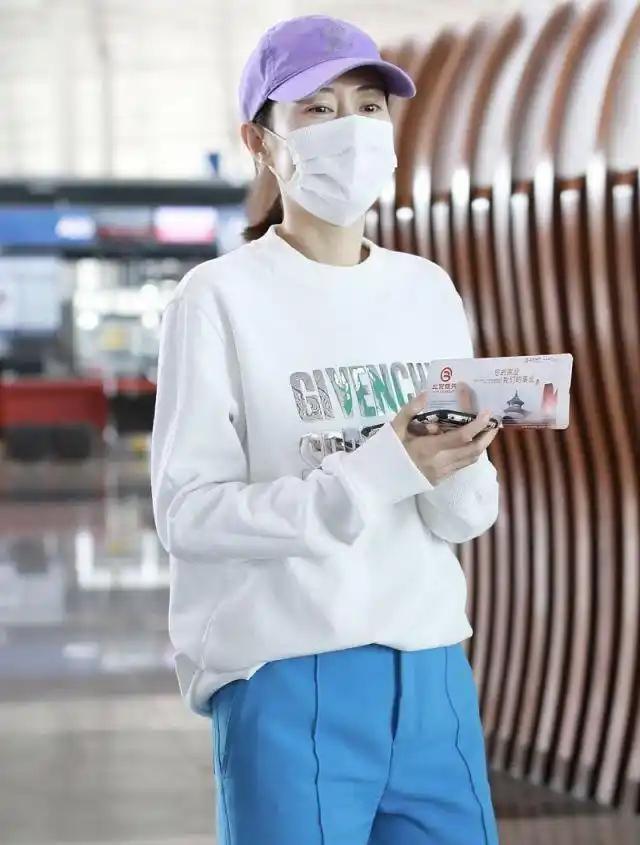 刘敏涛的穿搭打破常规, 白色卫衣搭配蓝色运动裤,干净又清爽